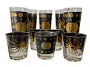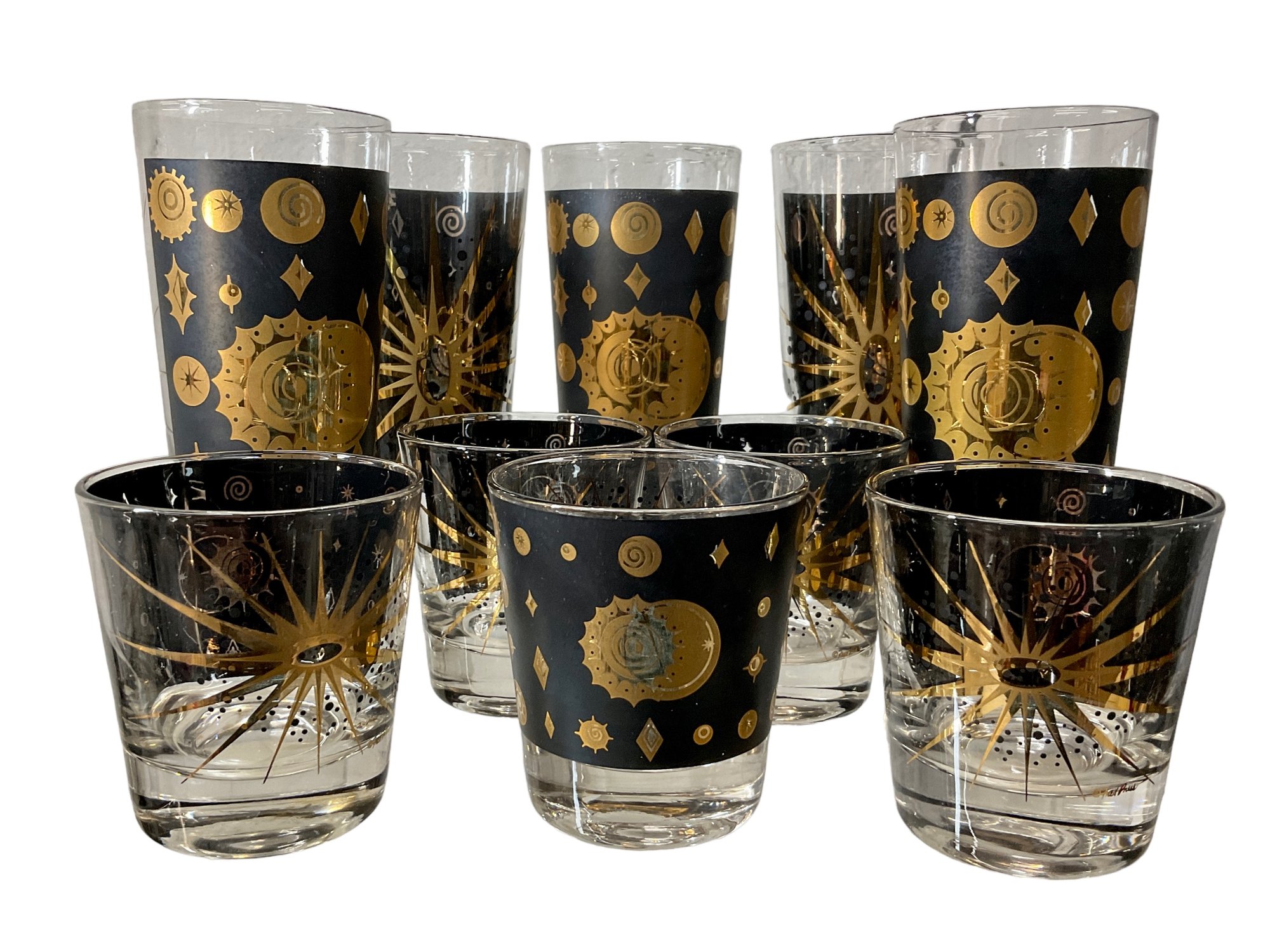 10 Pieces Of Fred Press Barware Eclipse Sunburst 22KT, no damage noted. 5 Highball Cocktail glasses and 5 rocks glasses.