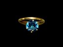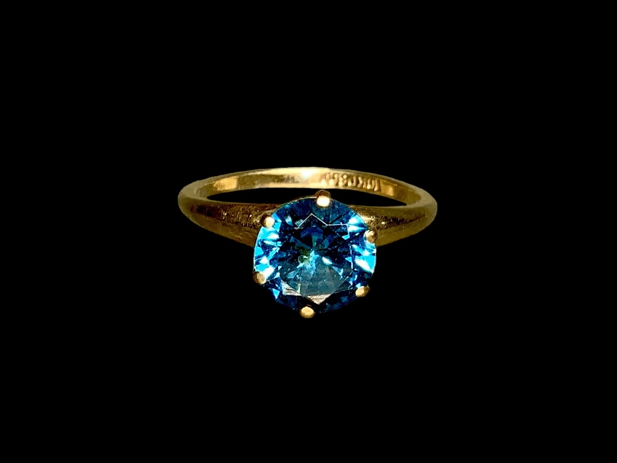 10K And Blue Stone Vintage Solitaire Ring, this ring is a size 6.5. The stone looks to be lab created, although it is not tested and we are not certain. Does not appear to have any natural inclusions. Weights 1.3 total dwt. Marked 10K.