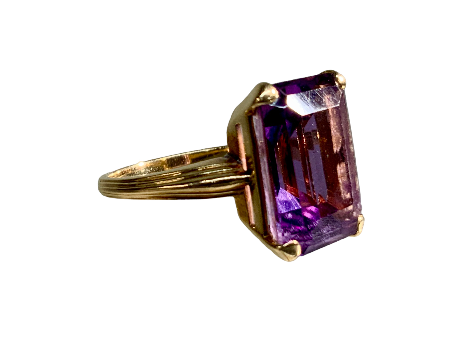 14K Gold Amethyst Solitaire Cocktail Ring, weight for entire ring is 3.02 DWT. Marked 14K, size 6.5