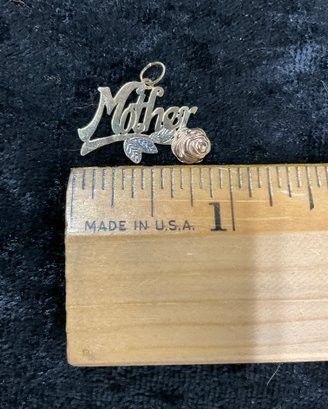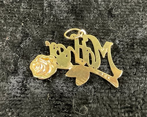 14K Yellow Gold Mother Pendant With Rose Decoration. In good condition. It is approx. 0.75” long.