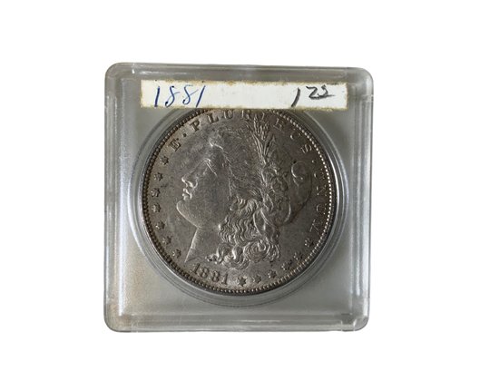 1881 Morgan Silver Dollar 90 Percent Fine Silver Coin In Plastic Case. We are not coin graders, and make no claims to be, please rely on pictures as your guide to condition.