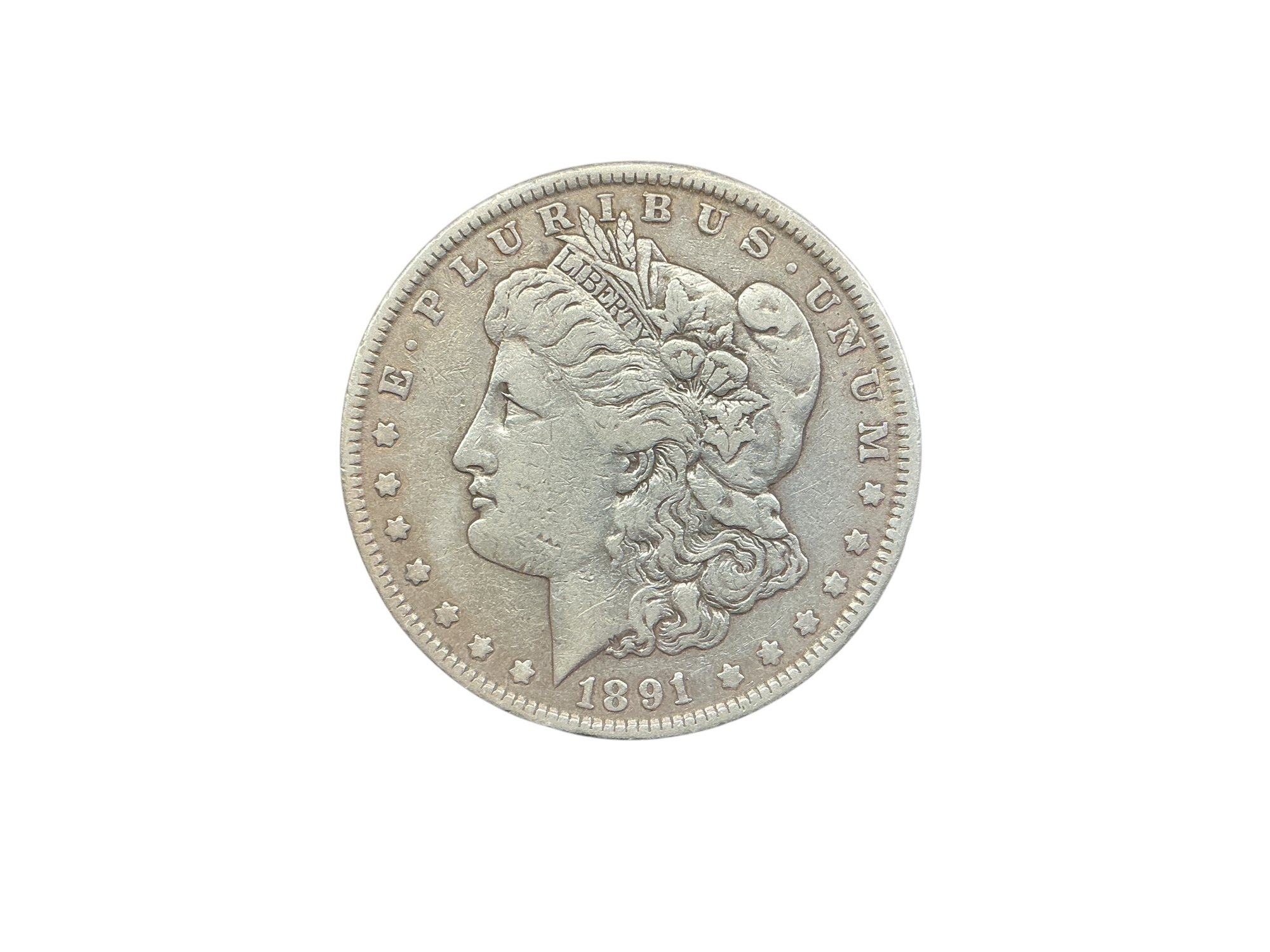 1891 Morgan Silver Dollar No Mint Mark Antique Coin. In good used condition.