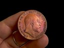 1910 British One Penny Coin Toning, just beautiful preservation of luster and toning on this coin.