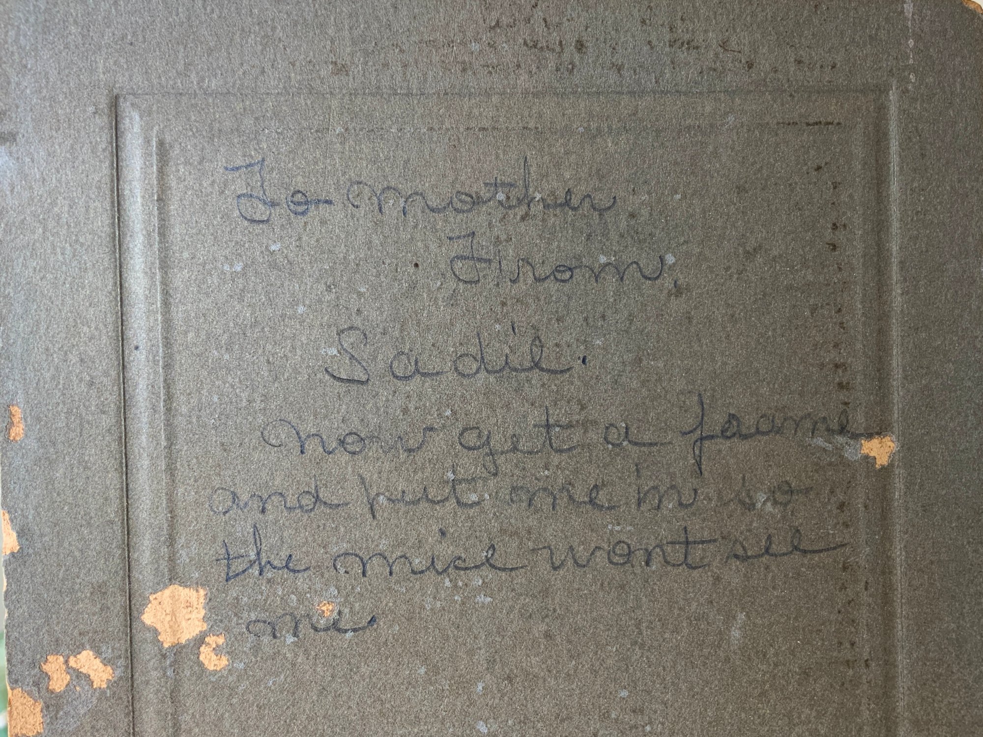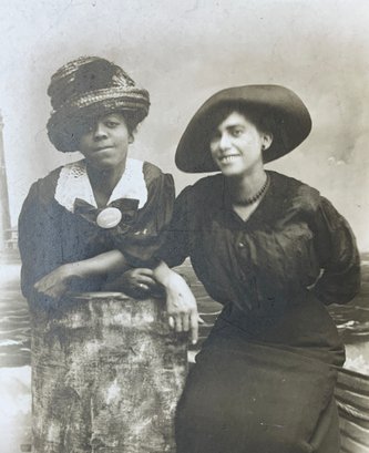 1910s Antique Photo Of Black Women, photo itself measures 5.5” x 3.5.” Inscribed on the back, “To Mother from Sadie, Now get a frame and put me in so the mice won’t see me.” Beautiful rare example of the subject matter.