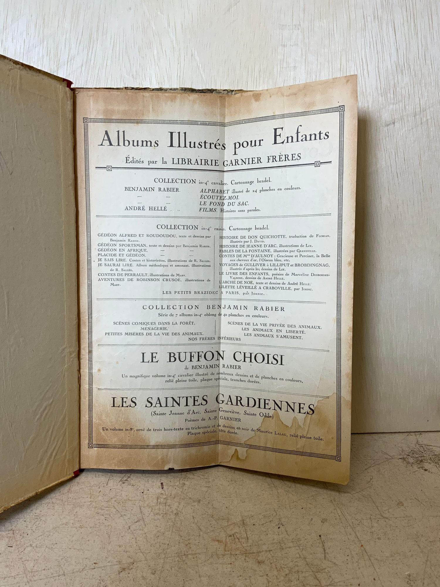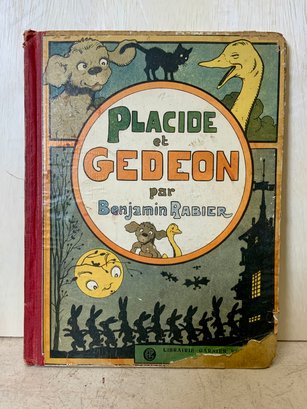 1920s French Childrens Book Placide Et Gedeon, measures 12.5” x 9.” See photos, condition issues.