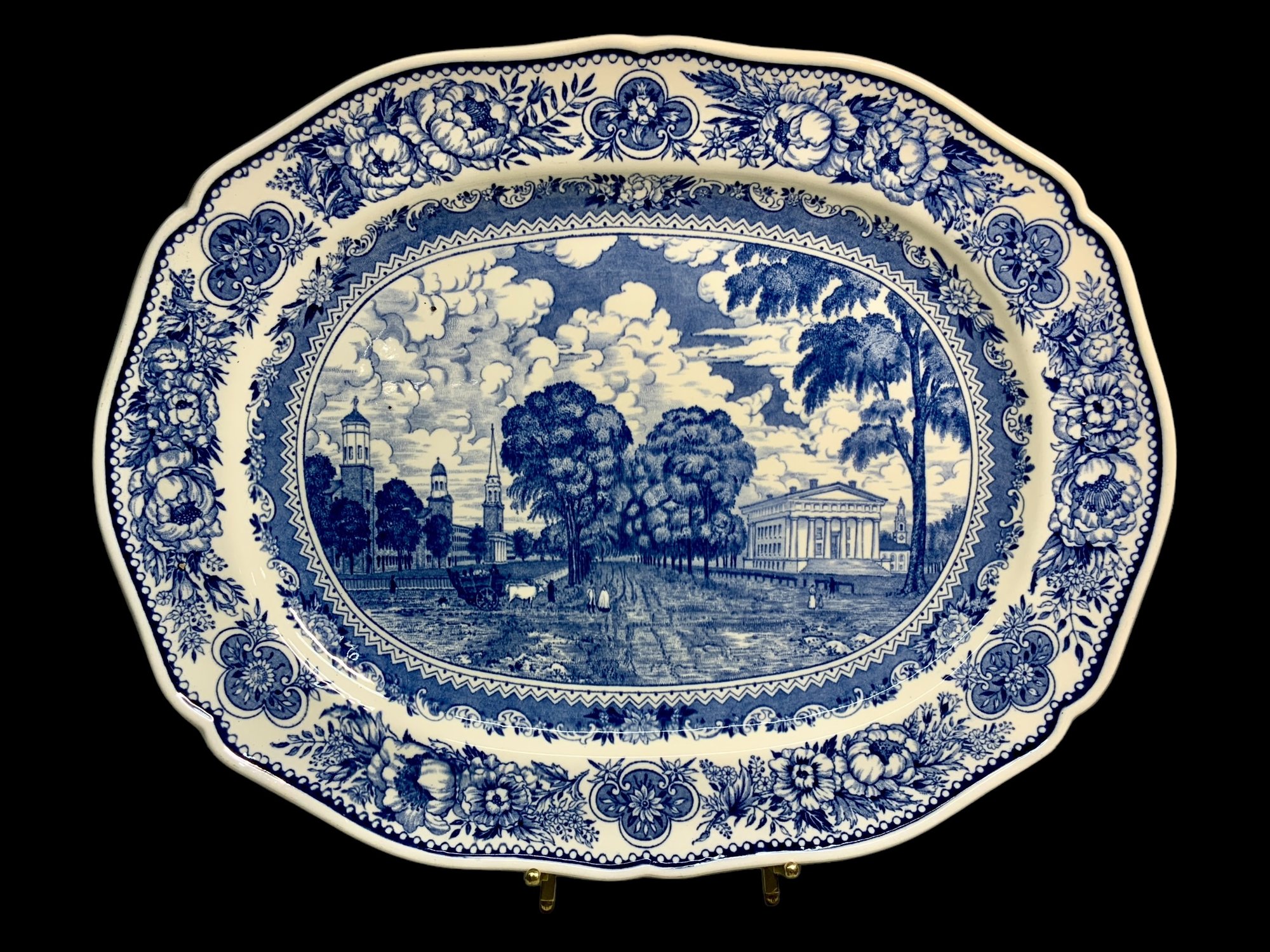 1932 Wedgwood Yale Campus Etruria Platter, measures 16.5” wide. No damage.