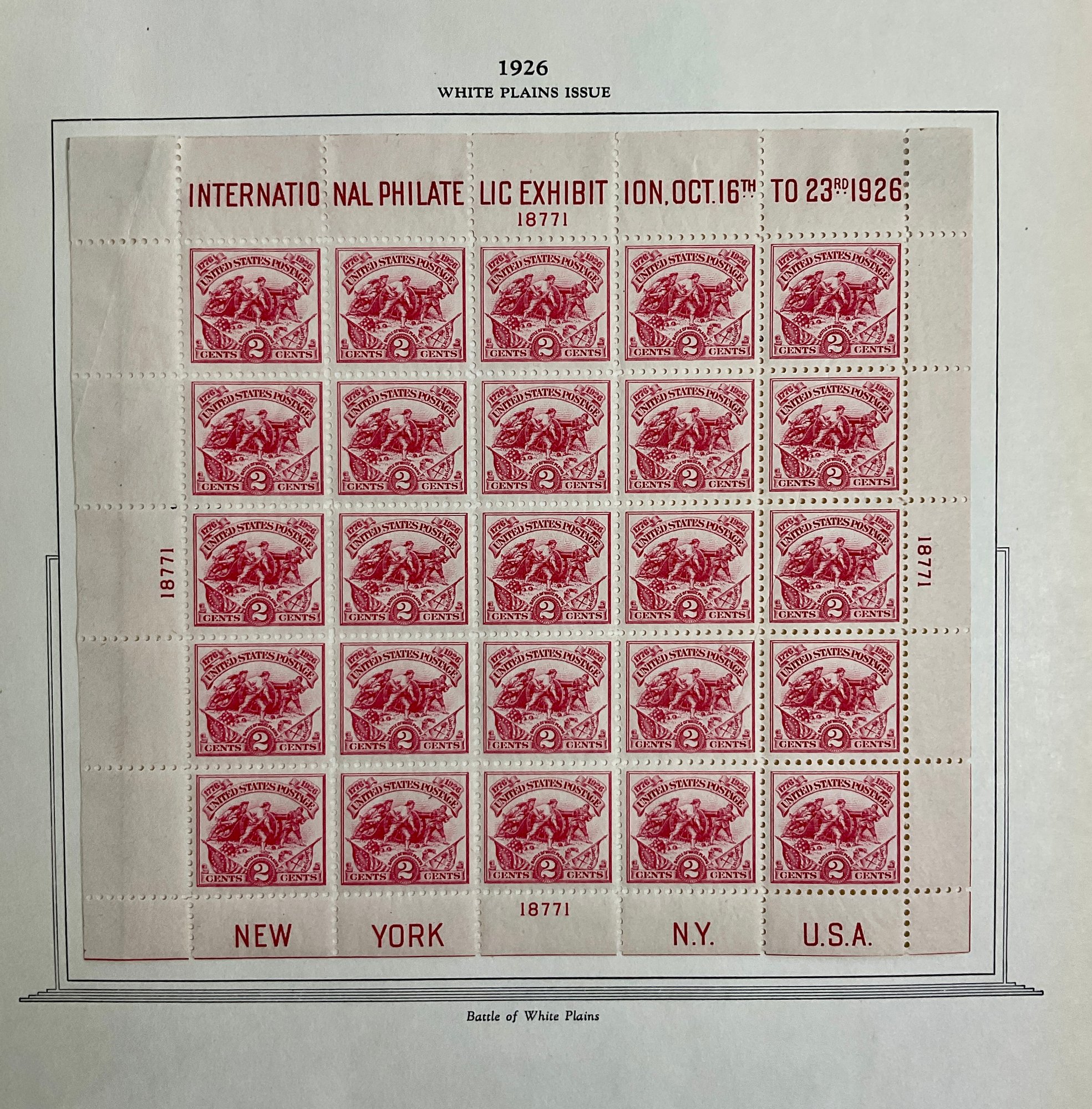 1935 Thorp Martin Stamp Album With 1926 White Plains Issue Block Sheet And Other Stamps. In very good condition.