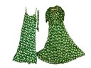 1940s Chiffon Green Layer Dress, this has a few small tears, most at the seams, as well as some discoloration issues. The slip is a thicker fabric, and the shift that goes over it is very gauzy and beautiful. There is a broken button [taped it to the dress]. This is a gorgeous color and we think it deserves some TLC.