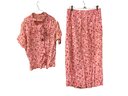 1940s Pink Shirt & Skirt Set, some Discoloration as shown. Some small tears and loose threads. 2 buttons missing off shirt. From a smoke free and pet free environment.