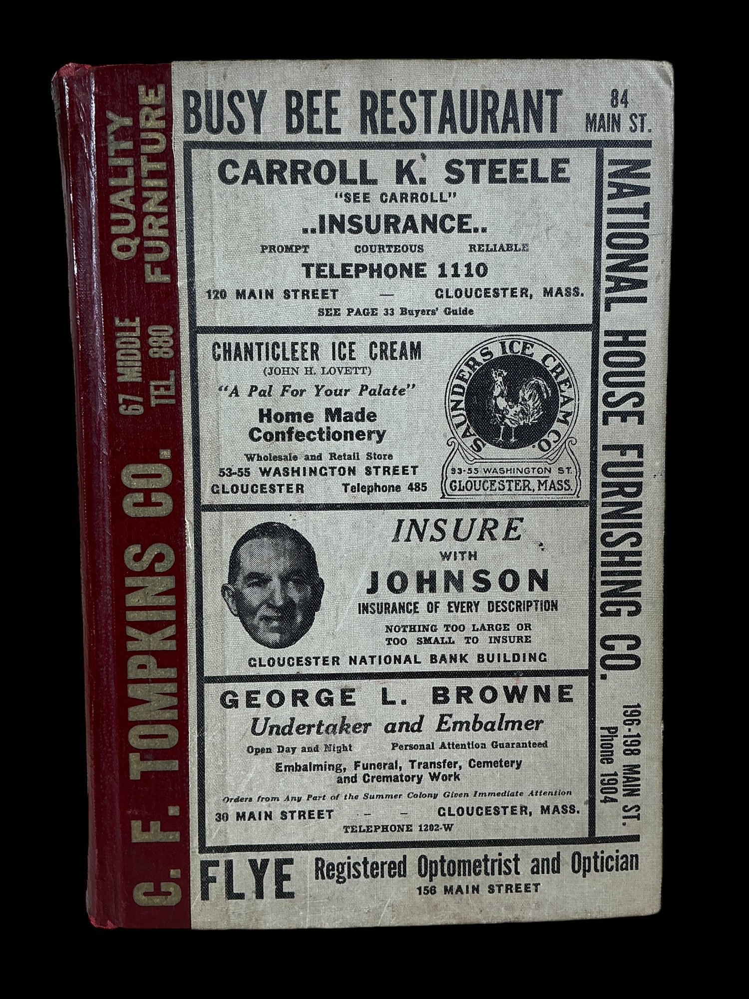 1944 Gloucester Directory Phone Book, see photos, lots of great old ads totally nostalgic! Early page is ripped out, but the name directory would be complete, see pics.