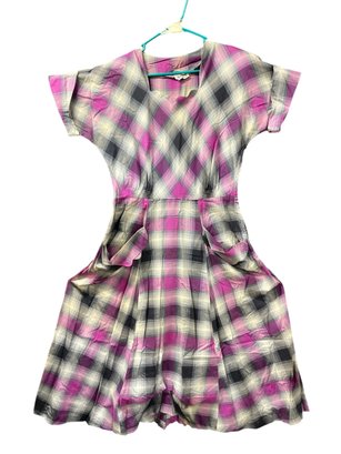 1950s Purple & Grey Gingham Dress, A good deal of the hem is undone, as shown in photos. Some discoloration throughout. From a smoke free and pet free environment.