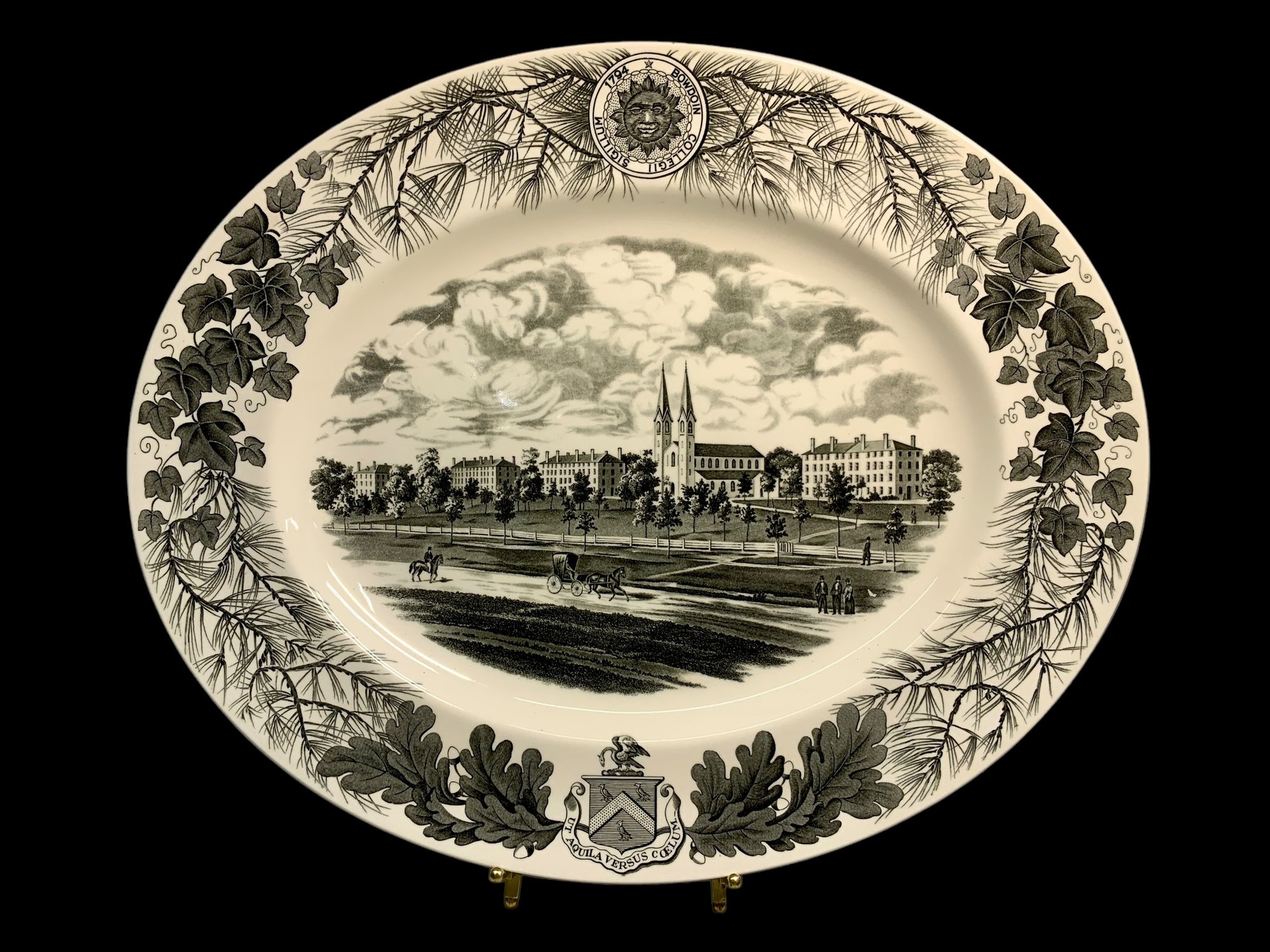 1960 Wedgwood Bowdoin College Campus Platter, measures 17” wide. No damage.