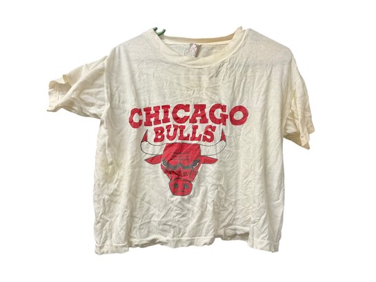 1990s Chicago Bulls T Shirt Size Small, has a more cropped style. See photos, faint discoloration. From a smoke free and pet free environment.