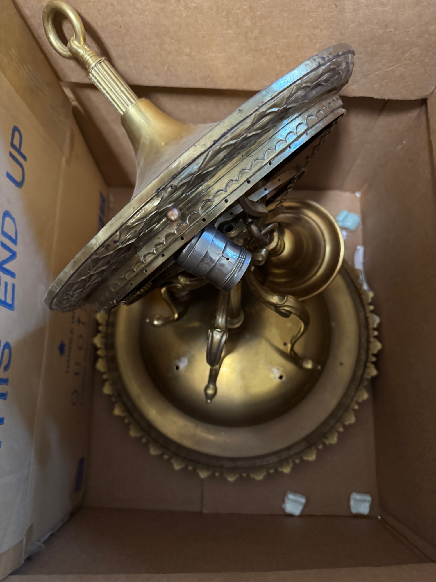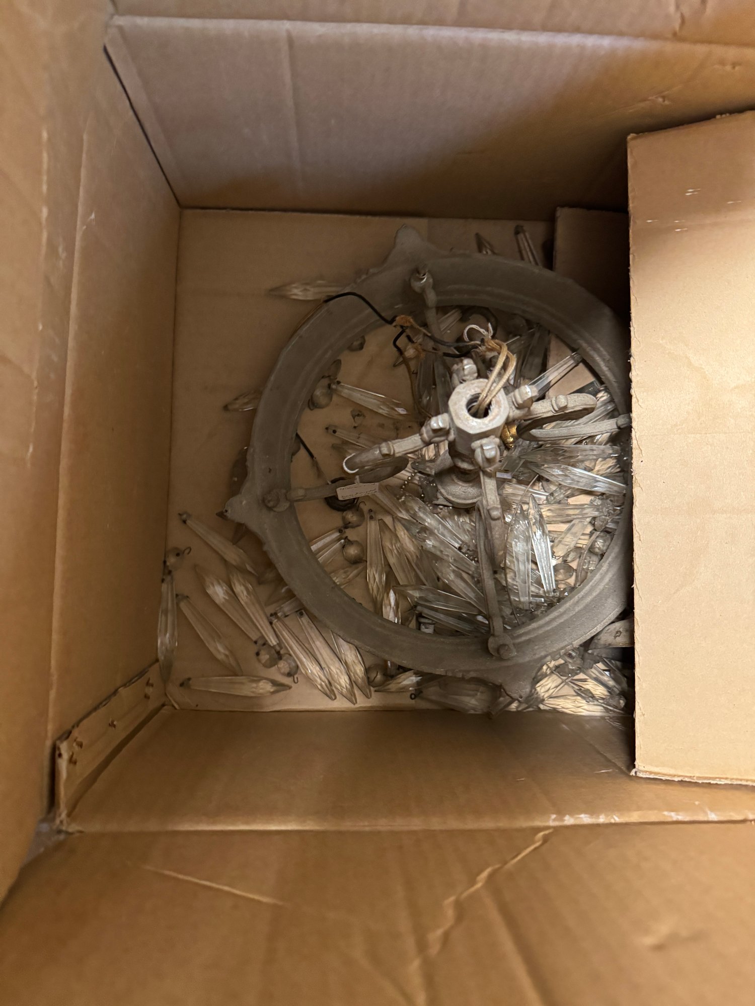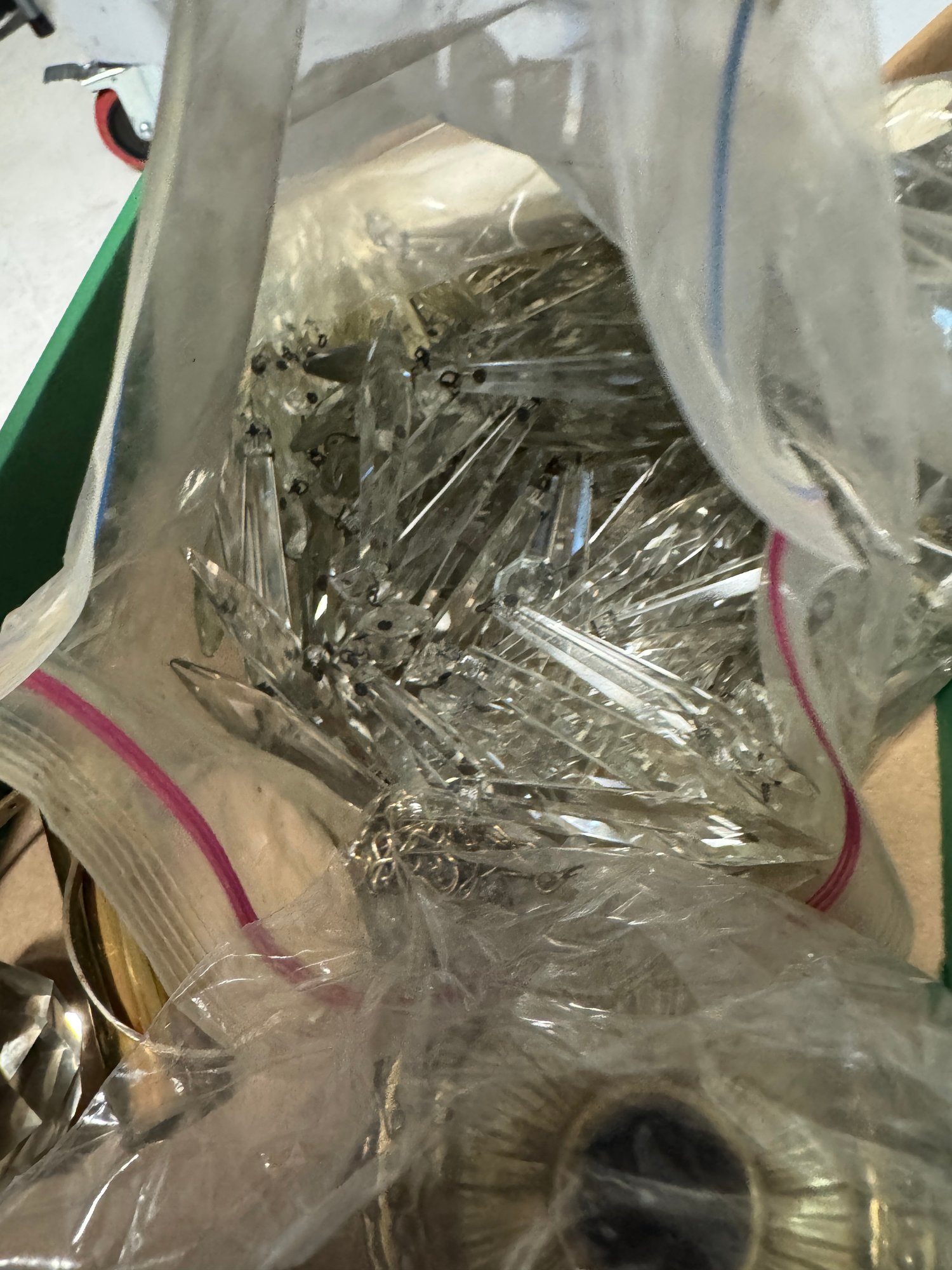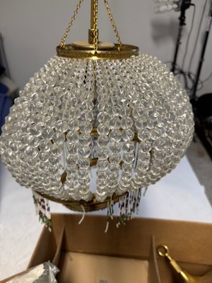 2 Antique Chandelier Projects, we're not sure what's here, but they look like a good start. The glass beaded art deco style is 33" tall x 17" in diameter. Lots of crystals with the brass fixture.
