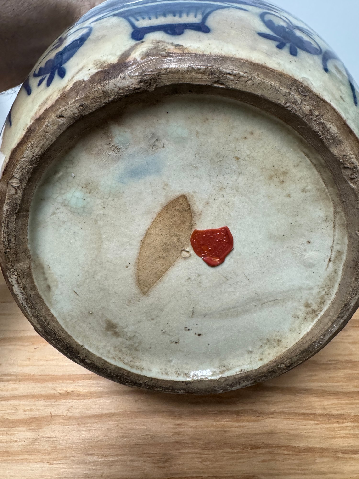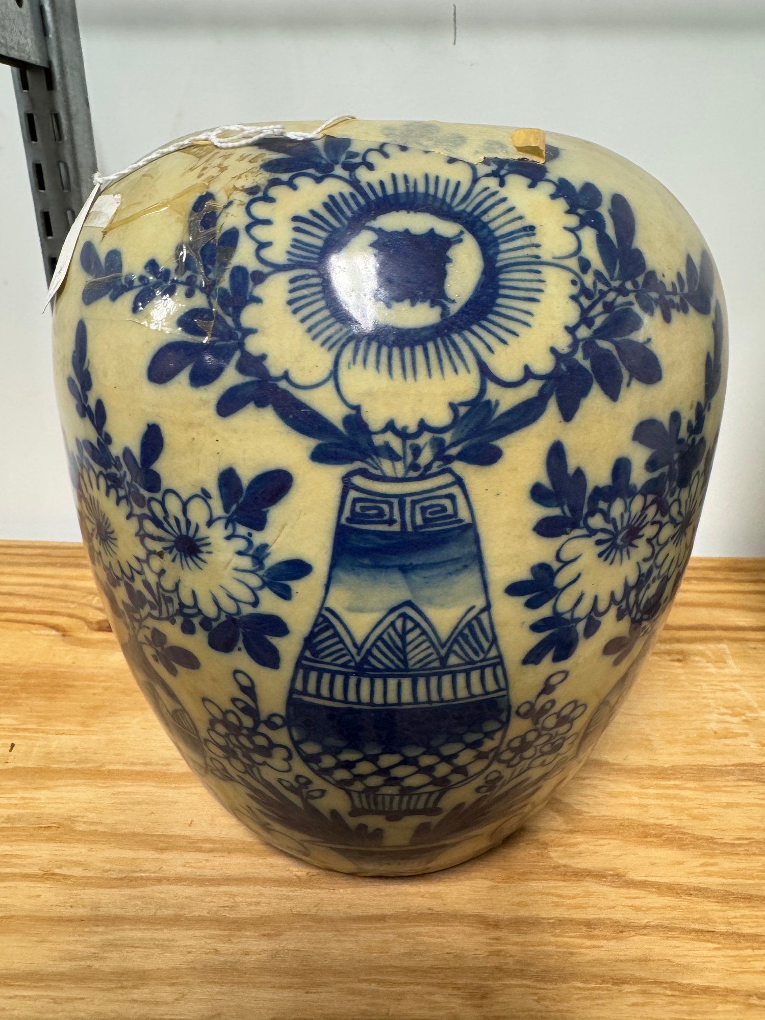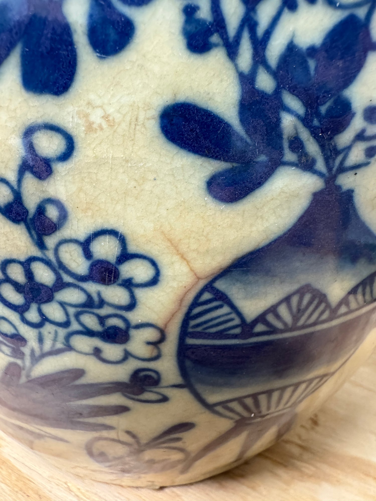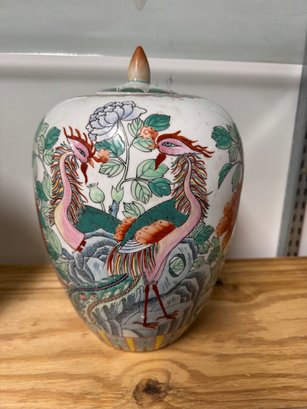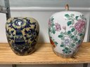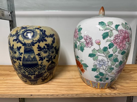 2 Ginger Jars, one Old, the other New. The tallest one (new one) is 13" tall to the top of it's finial. The older has some age appropriate wear, see pics.