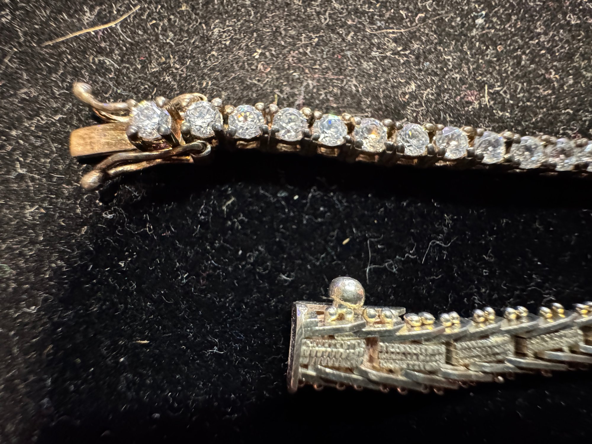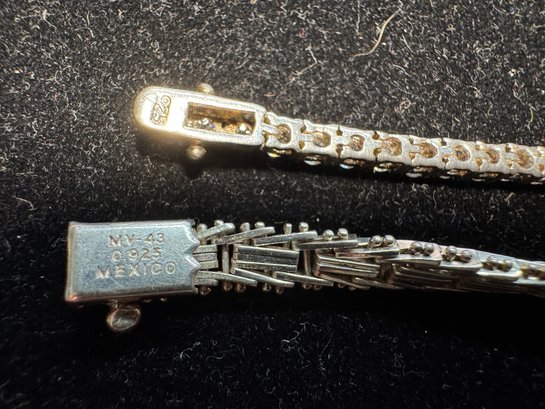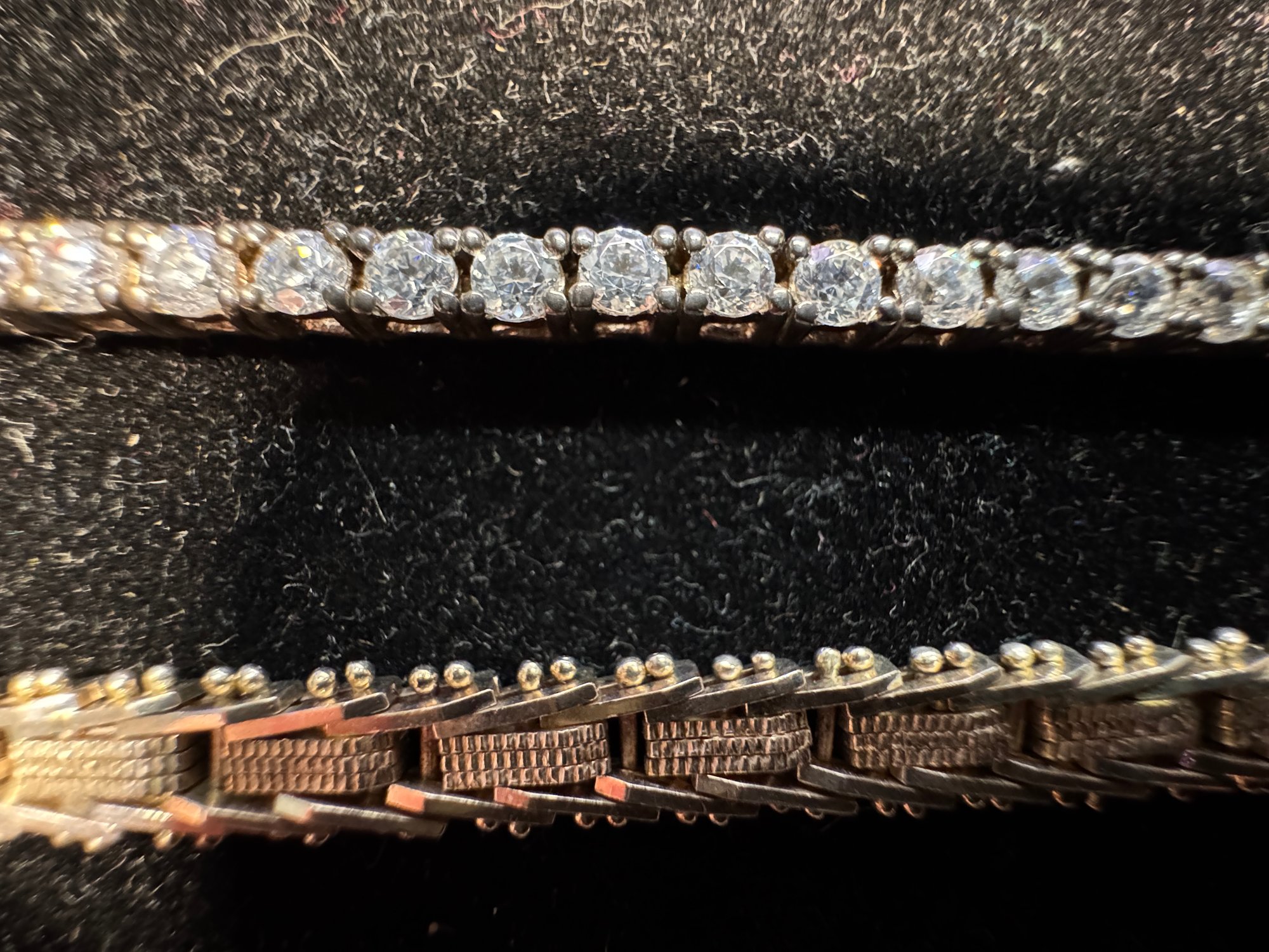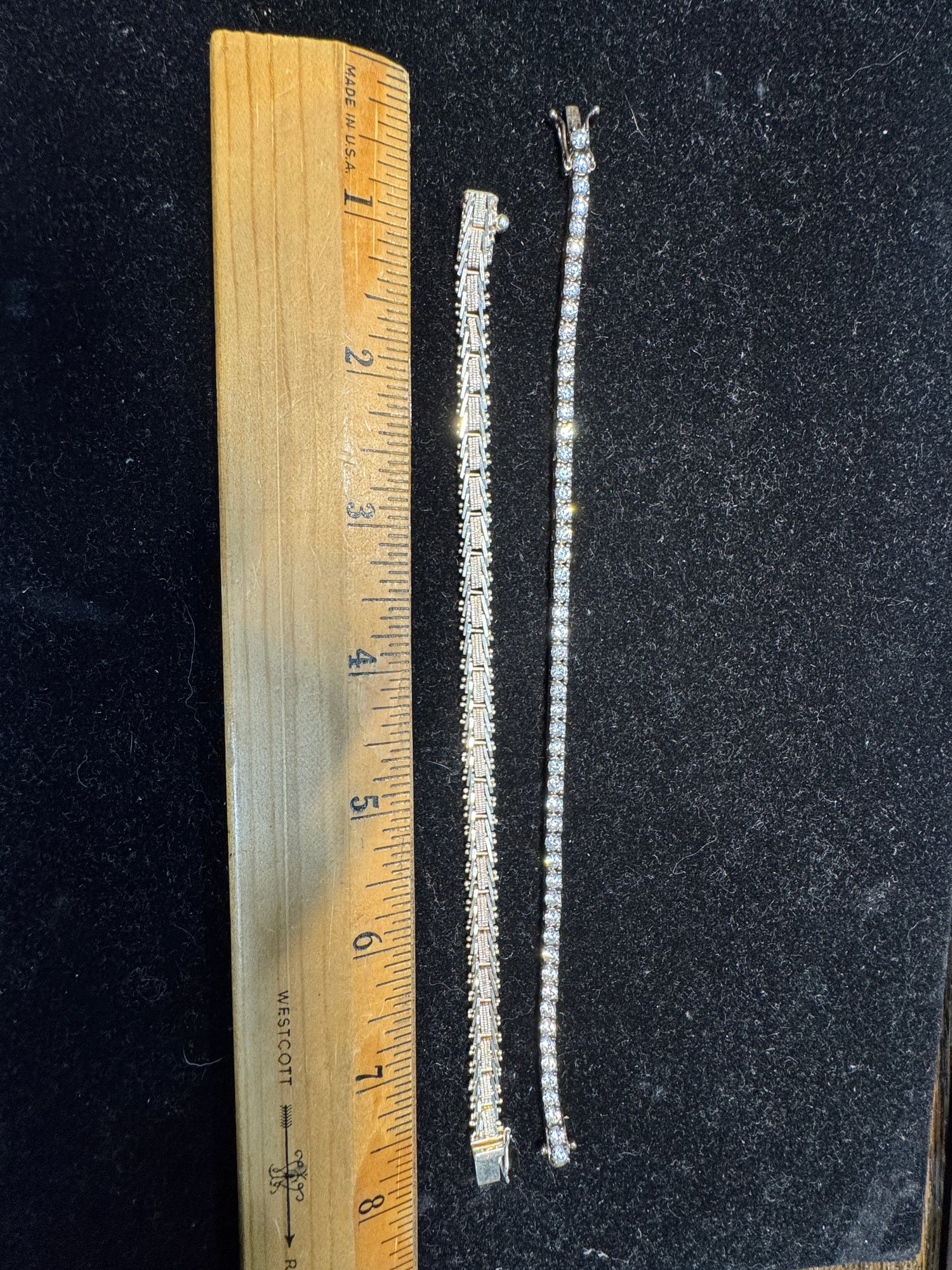 These are both silver toned, sterling silver bracelets in excellent condition, no stones missing, one is 7" the other is 8" see photos.