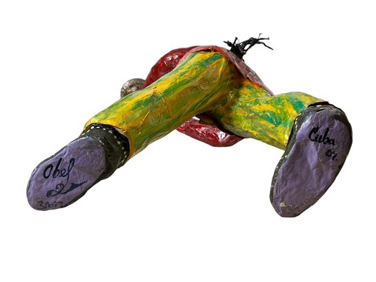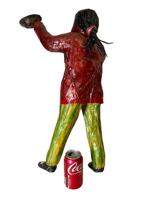 2002 Cuban Papier Mache Figure Of A Waiter Outsider Art Signed. In good condition. It is approx. 23.5” tall.