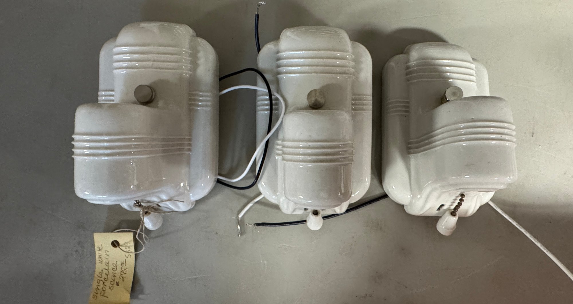 3 Antique White Porcelain Art Deco Sconces. There are in excellent condition. They measure 6" x 4" x4"