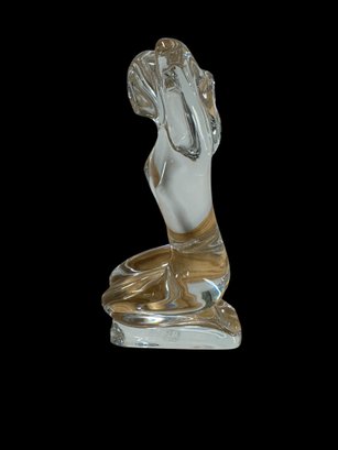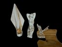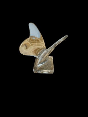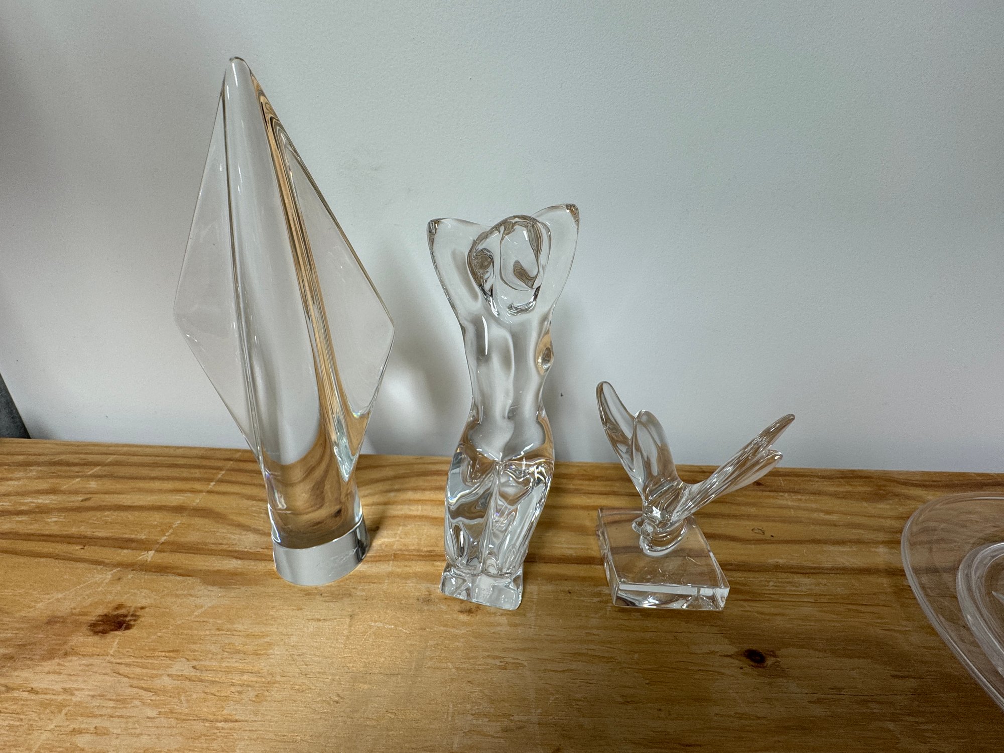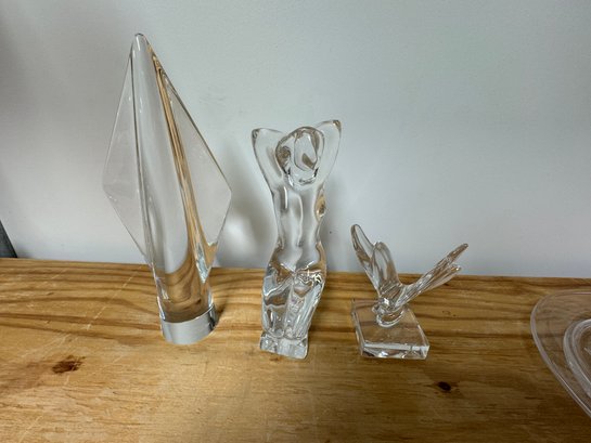 3 Baccarat Art Glass Sculptures, Woman Spade / Lance butterfly. All are marked Baccarat. They are flawless. The tallest, (The Arrowhead) is 8" tall.