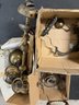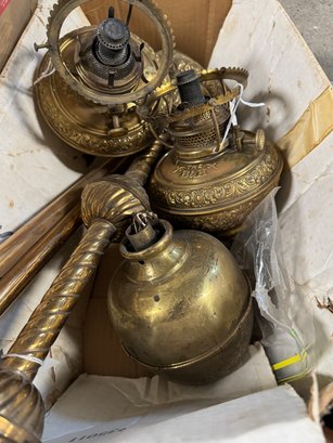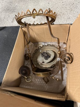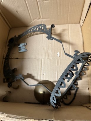 3 Boxes of Antique Brass Hanging Lantern Parts. WYSIWYG