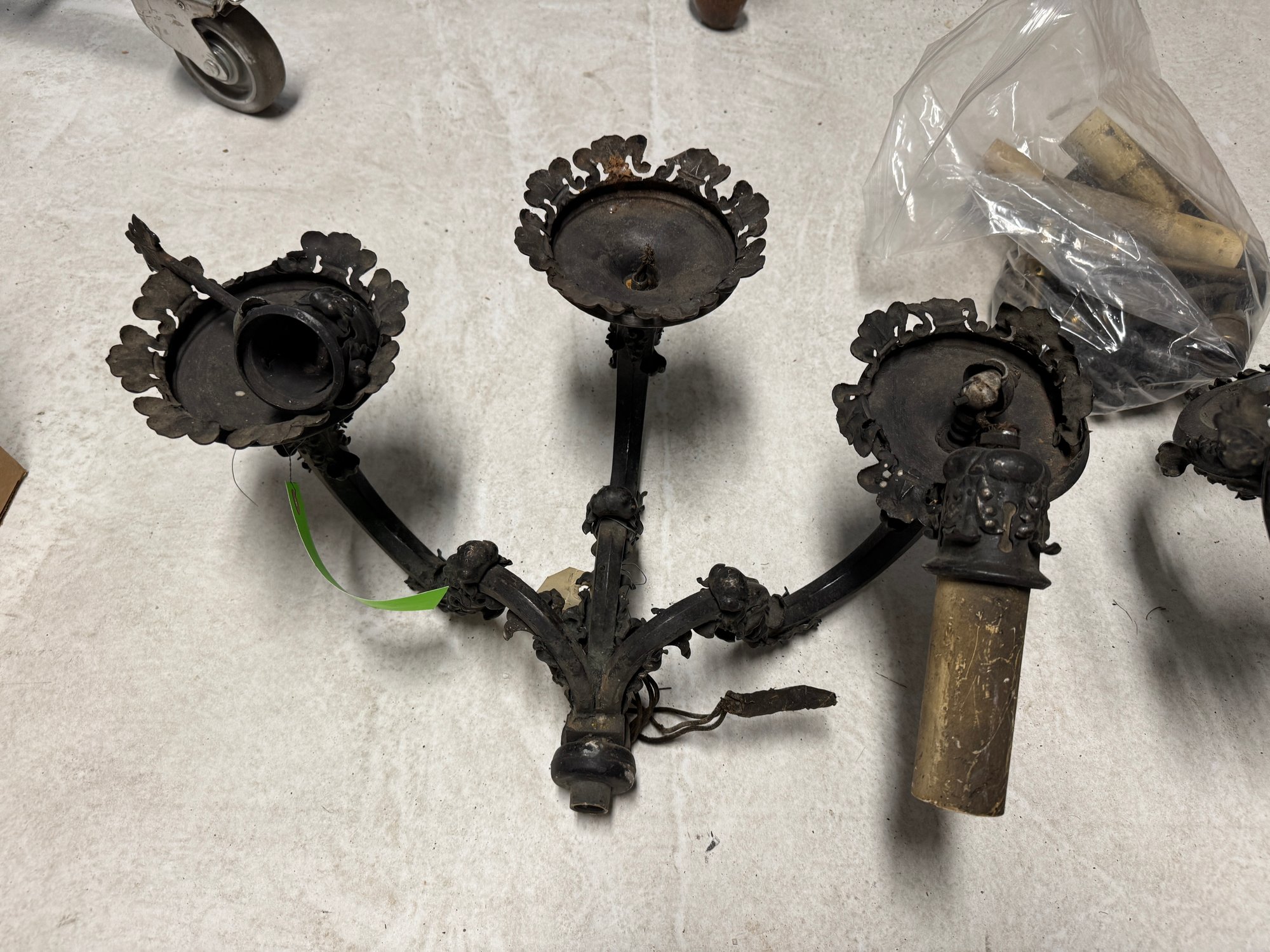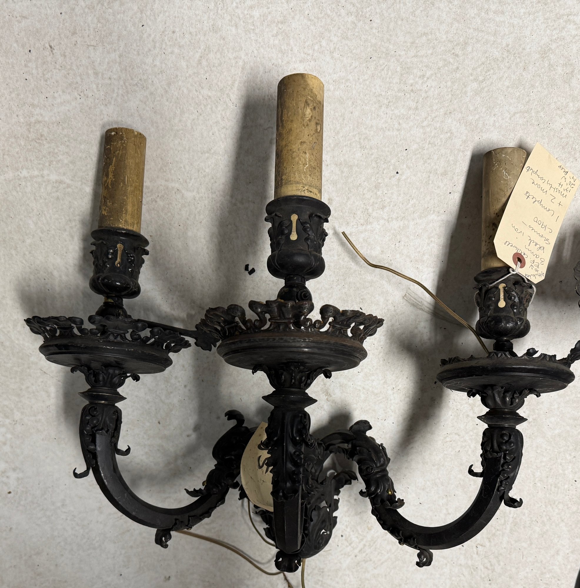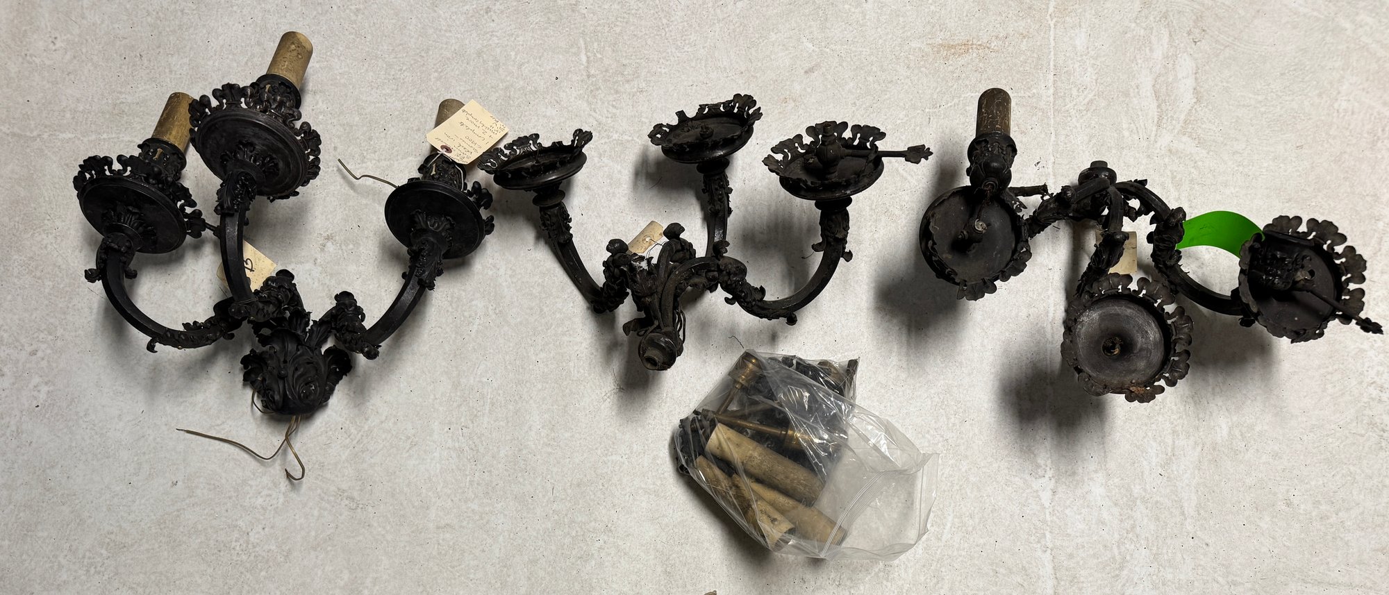 3 C 1900s Attributed to EF Caldwell 3 Arm Sconces, 1 is complete, two are partial, in as found condition. See pics. 17" x 20" 14"