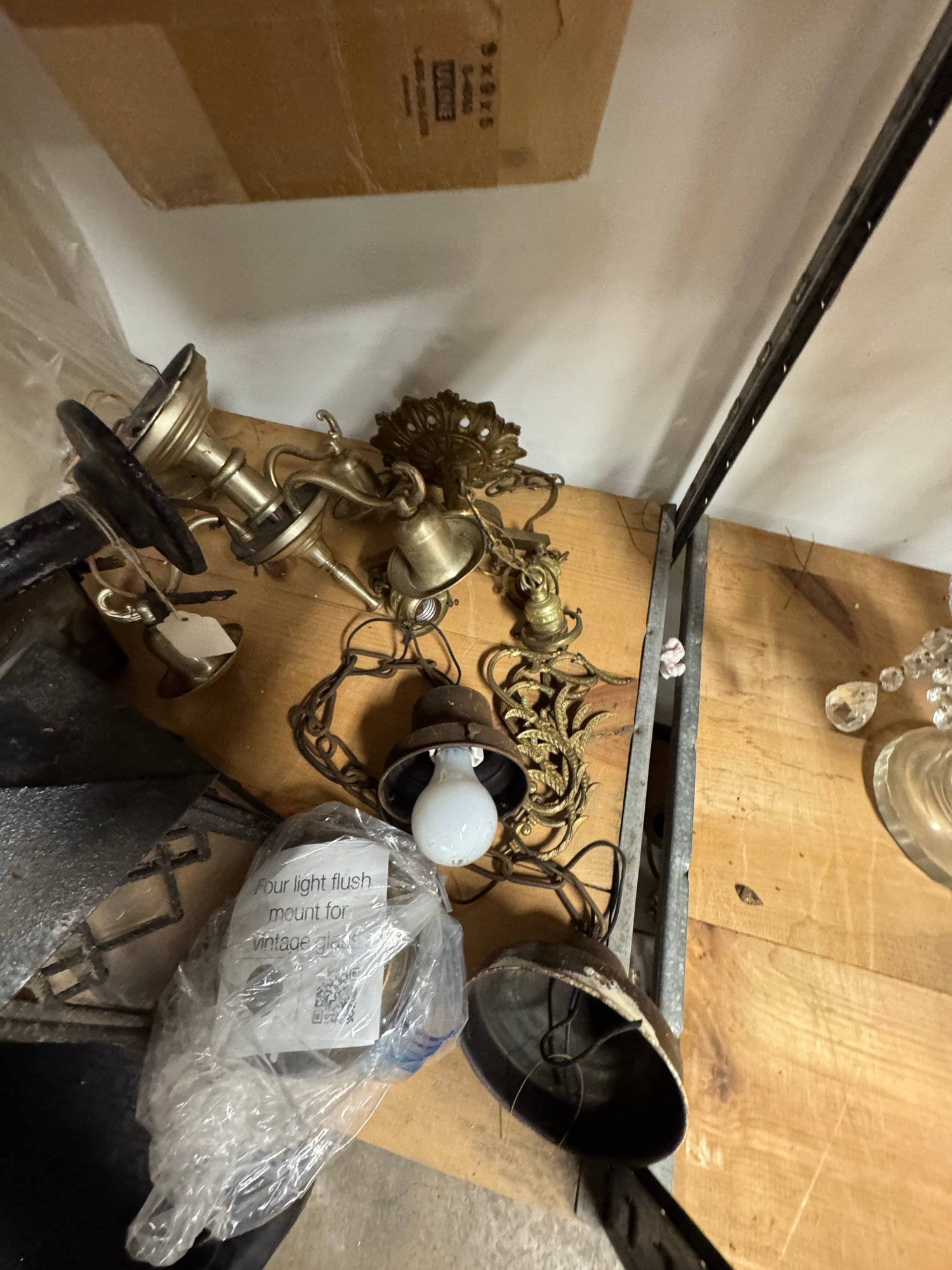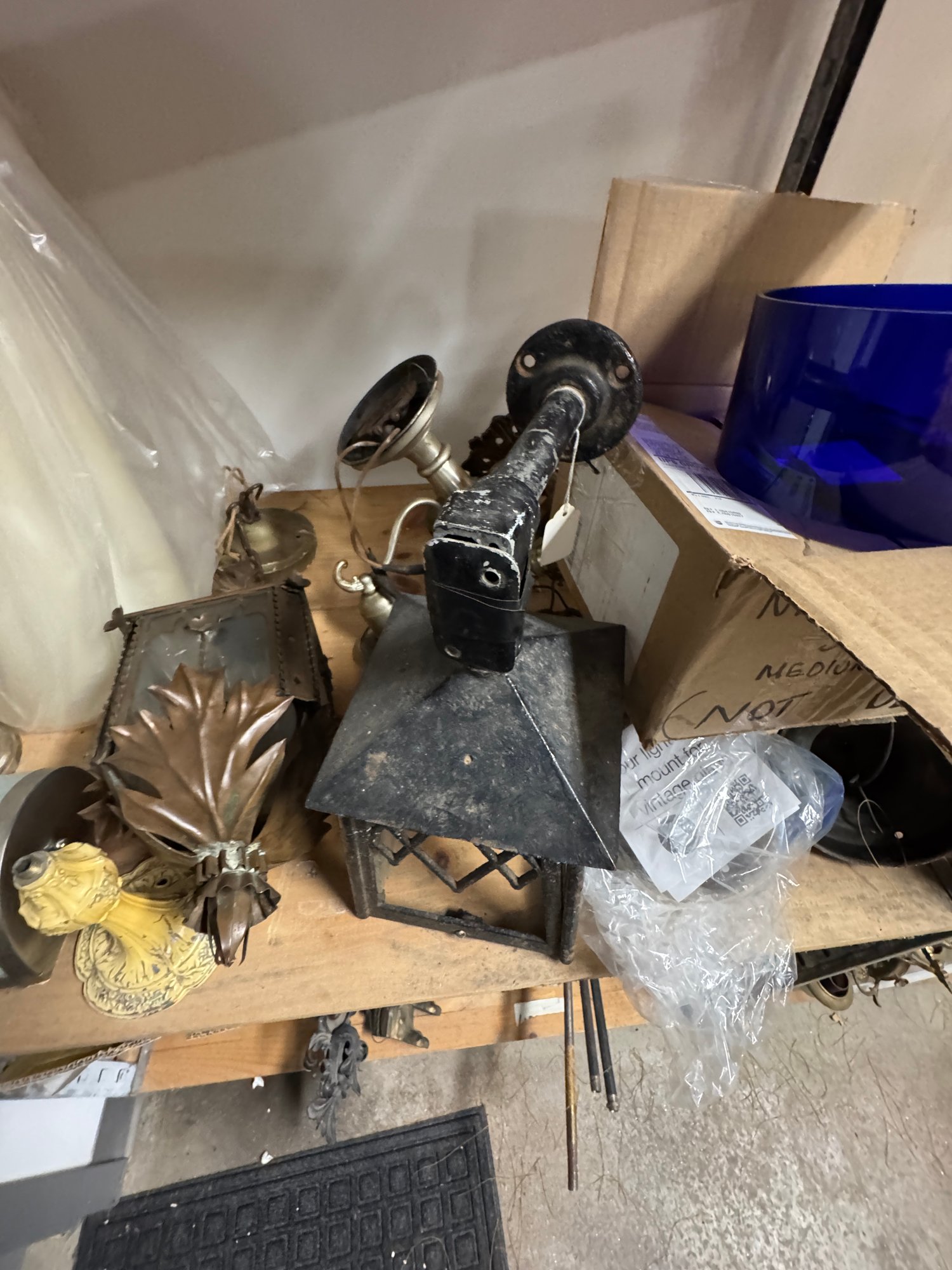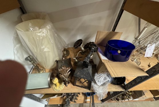 3 shelves of Misc lighting Fixtures Shades etc. WYSIWYG