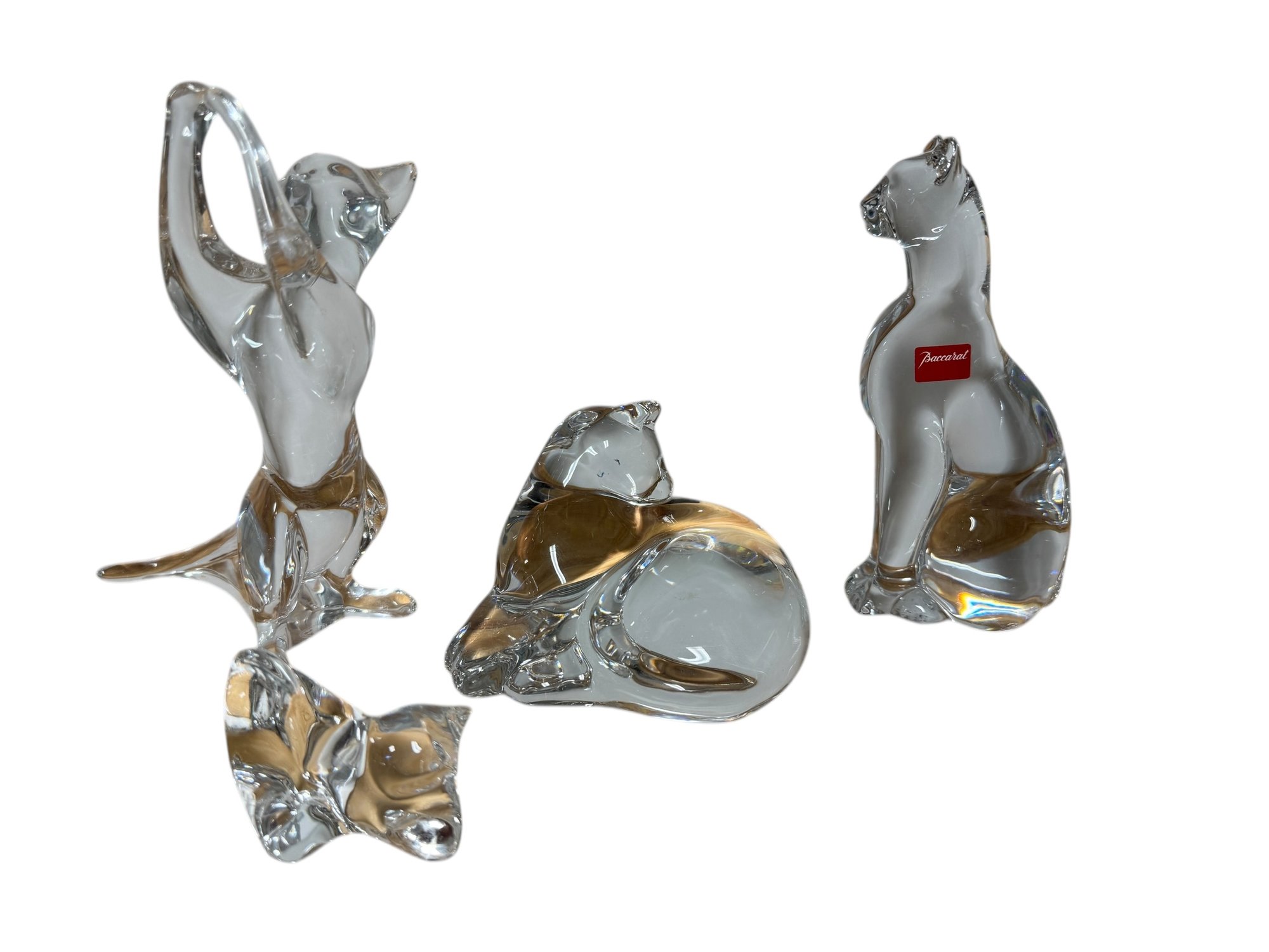 4 Baccarat Cat Kitty Figurines Sculptures, Perfect Condition. You're buying the 4 as a lot, they are lovely! All are signed Baccarat. The tallest is 6.5"