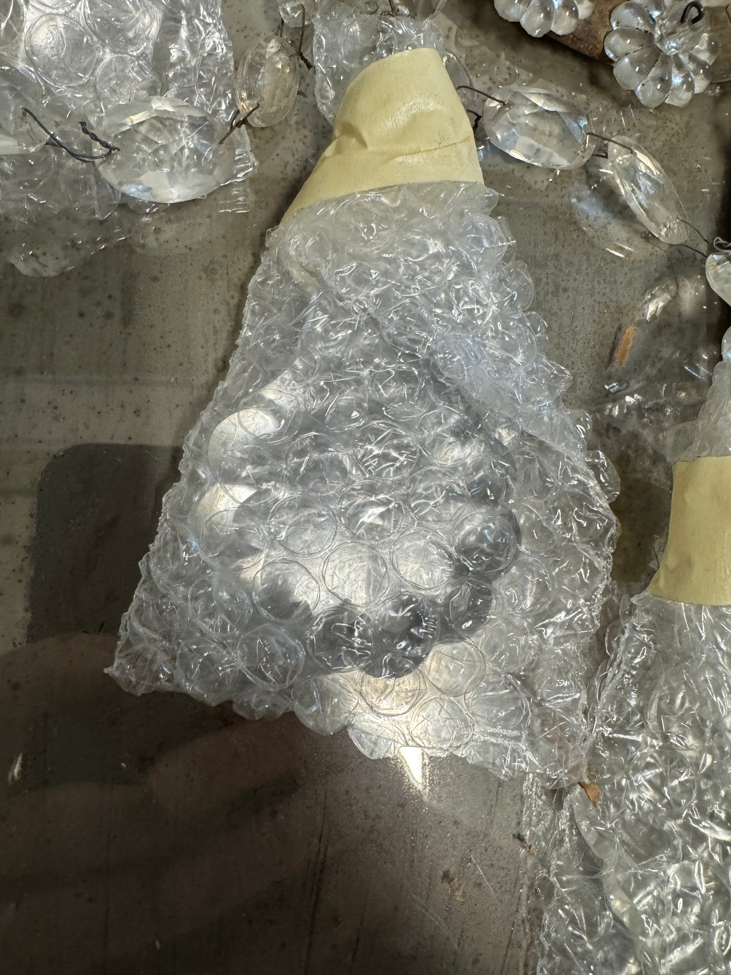 The mirrors have "ghosts" aka - silver is worn away, but they have such a Gothic look it's phenomenal. From the crystal rosettes, to the bobeches, we think they're just swell!