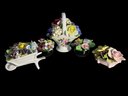 5 Vintage Fine Bone China Flower Arrangements. Aynsley, Coalport, Royal Adderley, and Denton. Some chipping and damage, some repair, see pictures. Tallest is 4.25”. Baseball is there for scale, not included in lot.