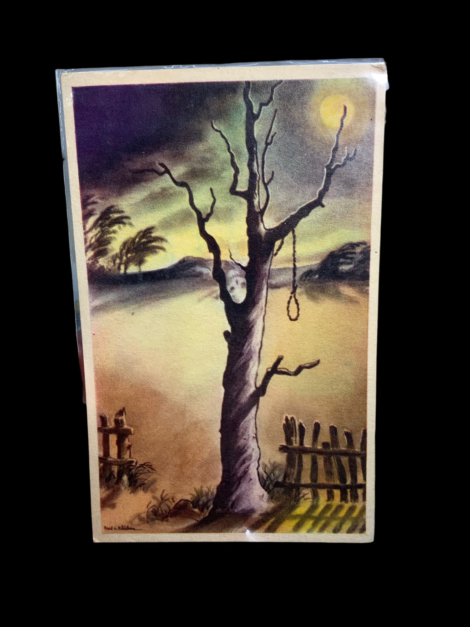 7 Antique Novelty Postcards With Spooky Halloween Skull Tree Etc.