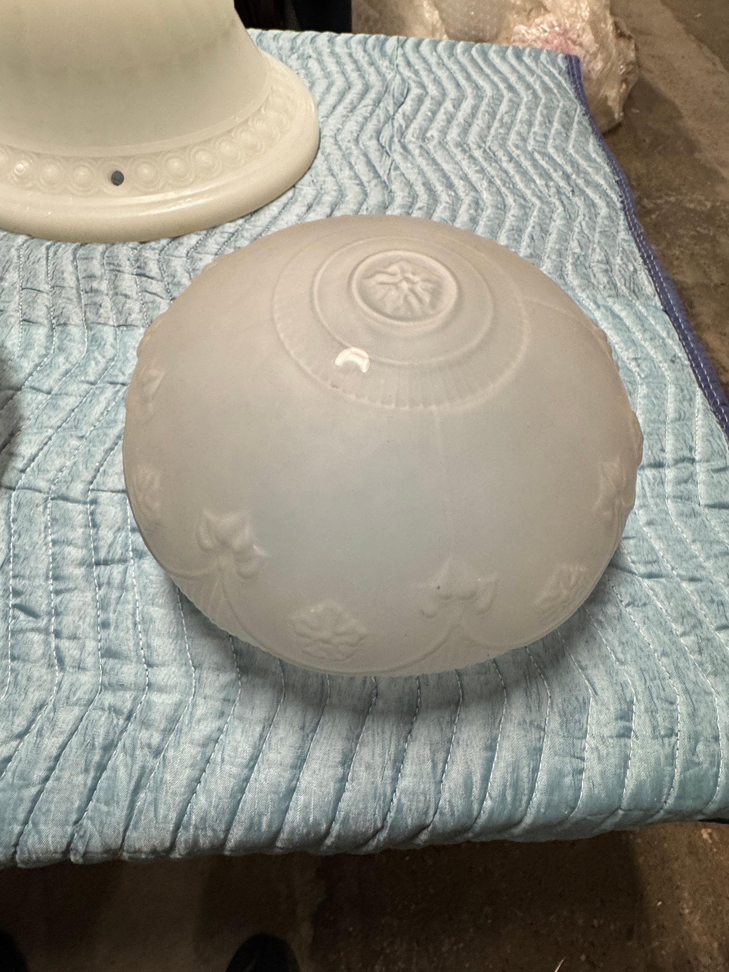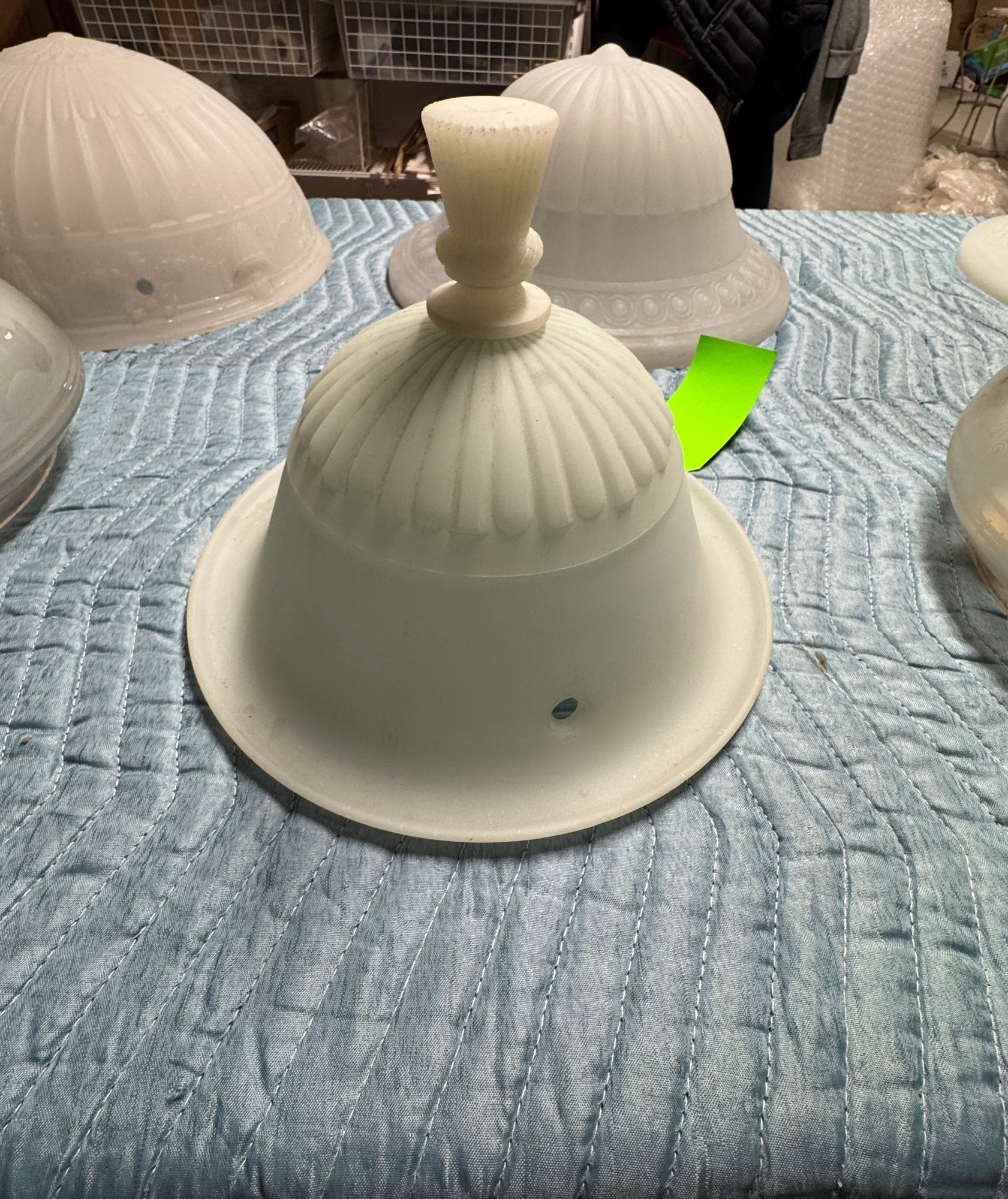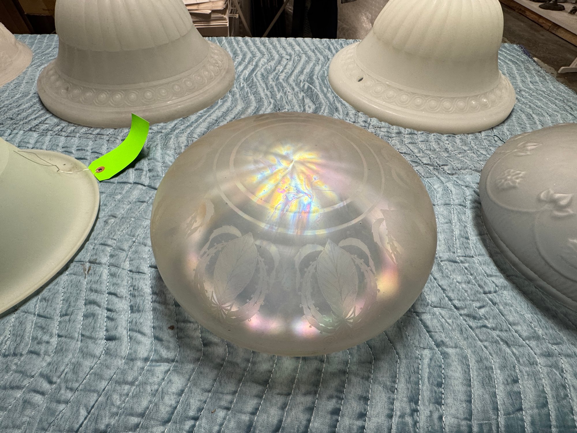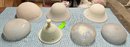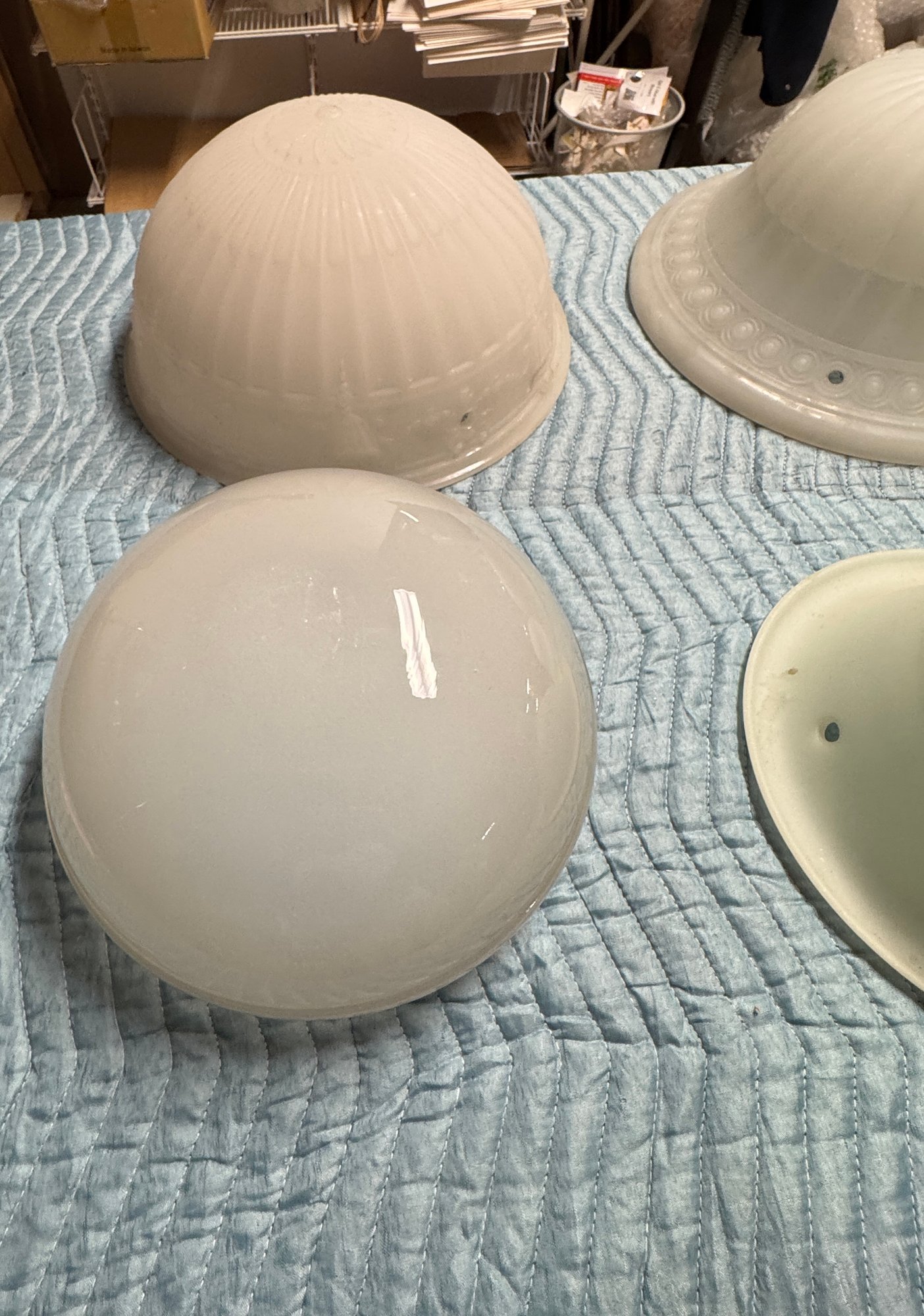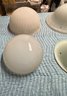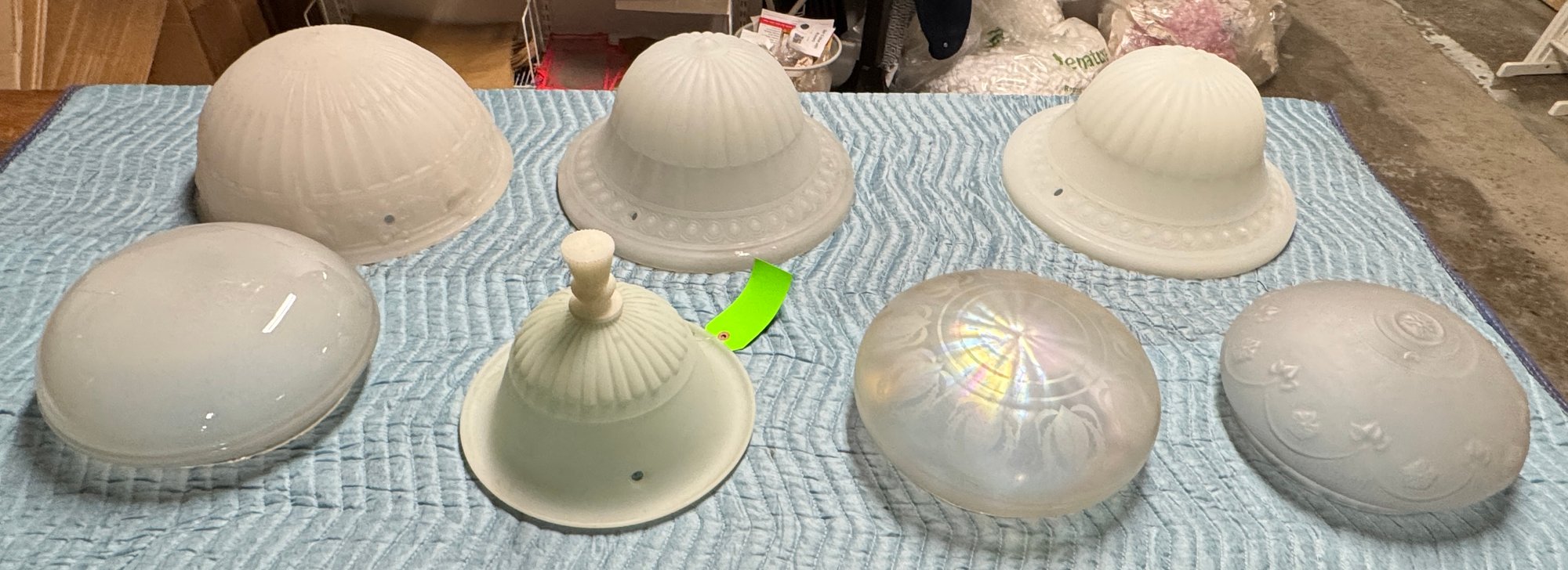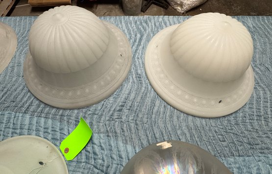 7 Antique / Vintage Glass Dome Light Globes. These are in good condition, the pair and the other large one are the biggest in the lot and measure 10" high by 16" diameter.