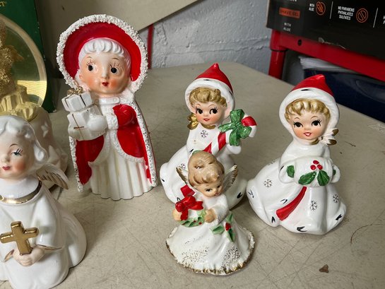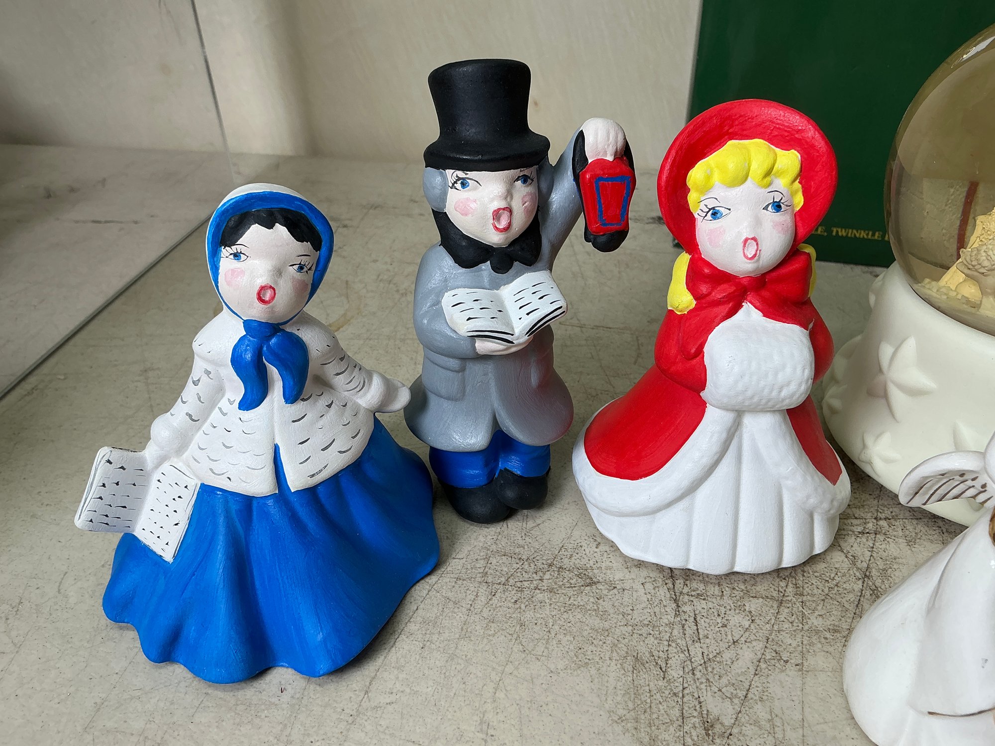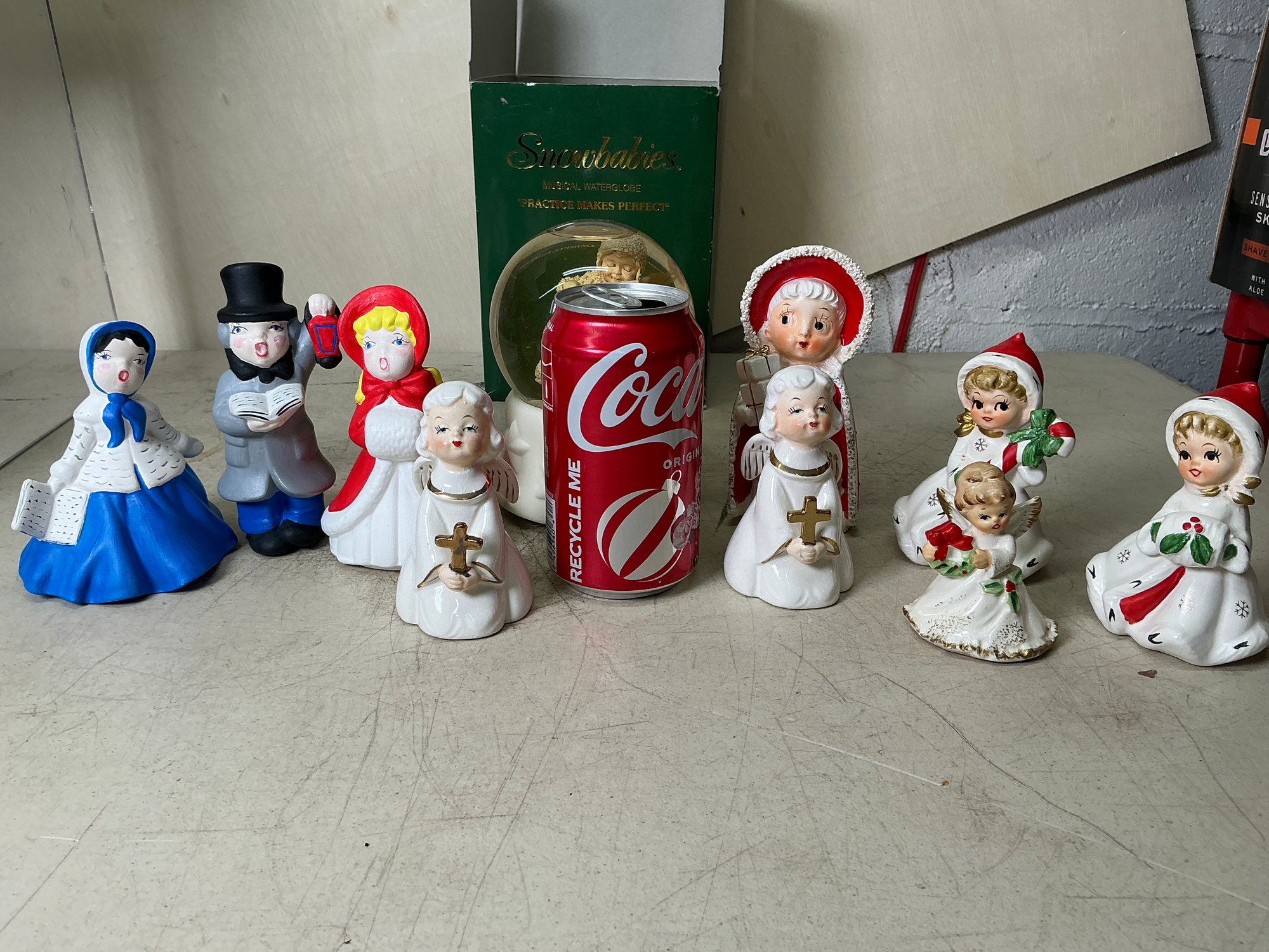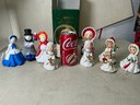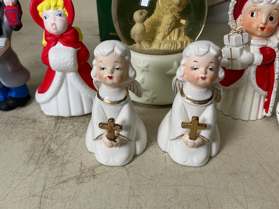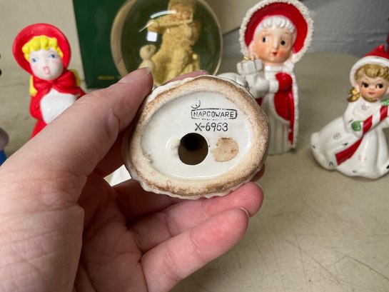 9 Vintage Holiday Figurines And Snowbabies Snow Globe. Various makers. Tallest Figurine is approx. 5.5”. See photos for details.