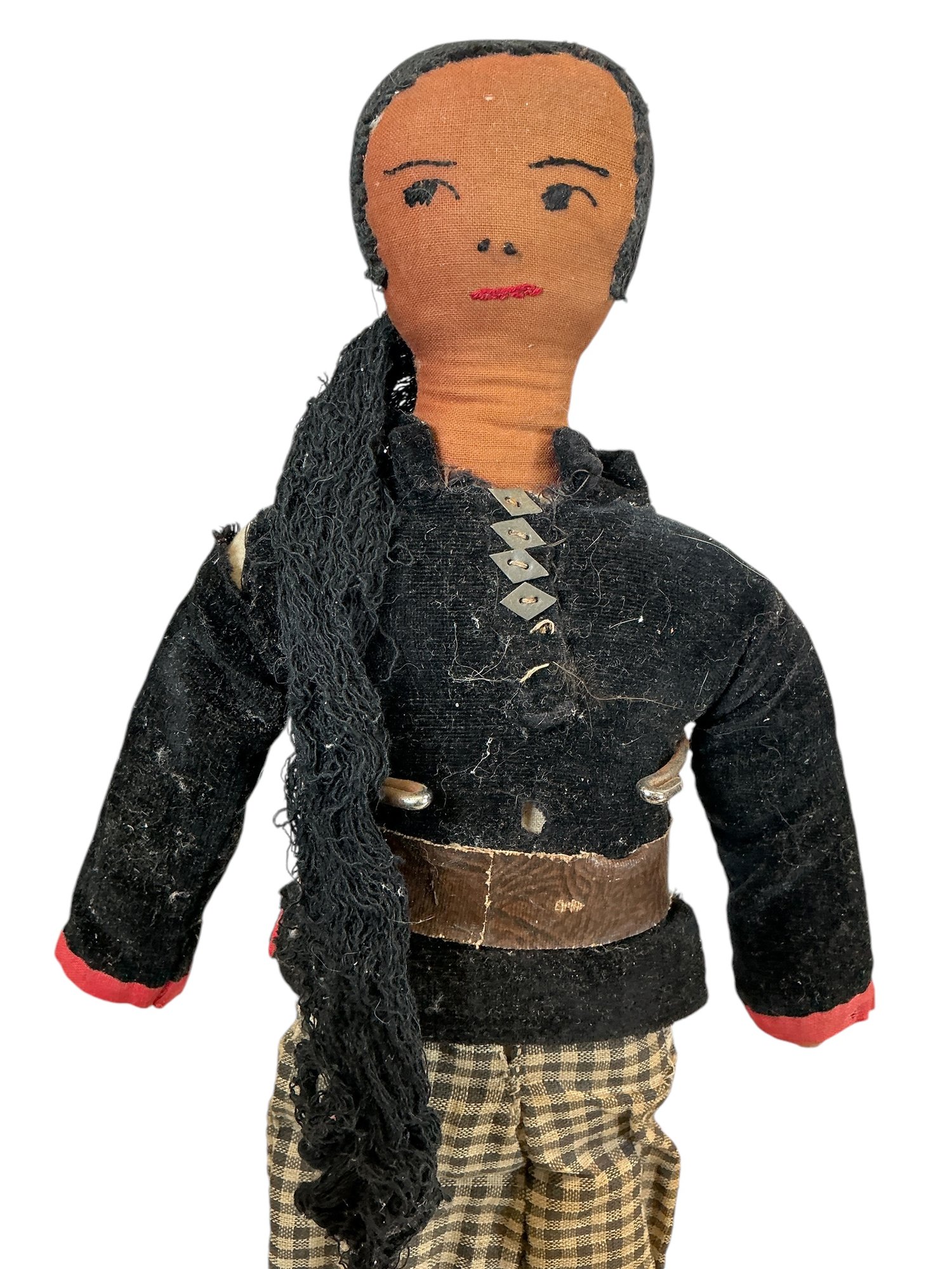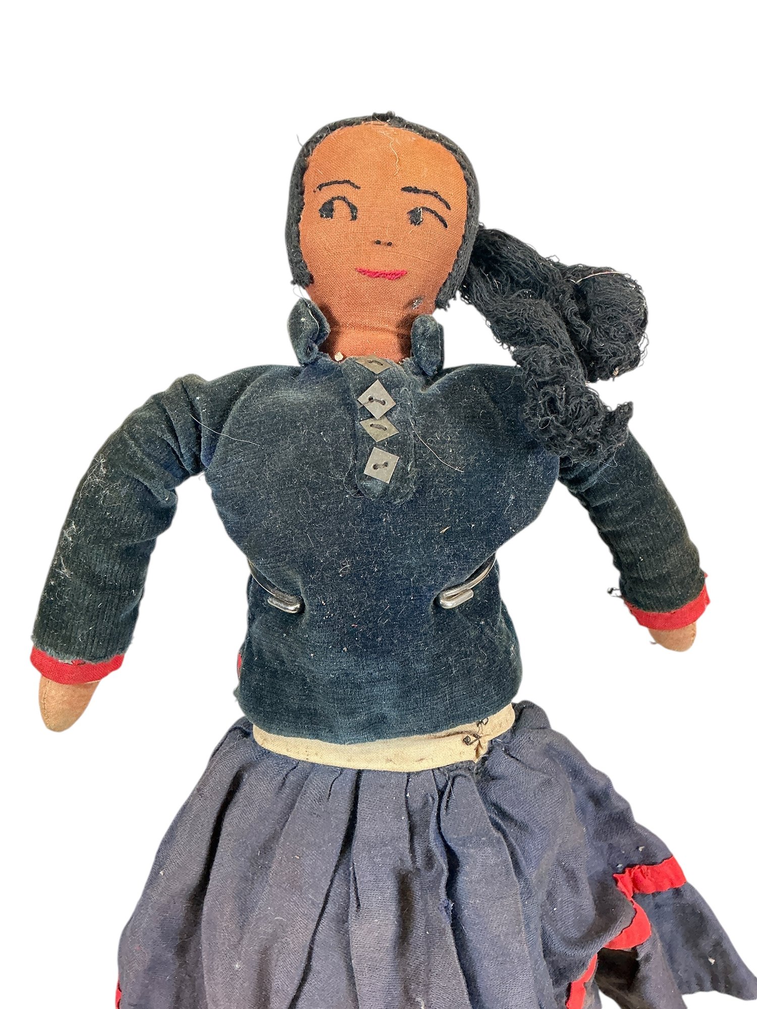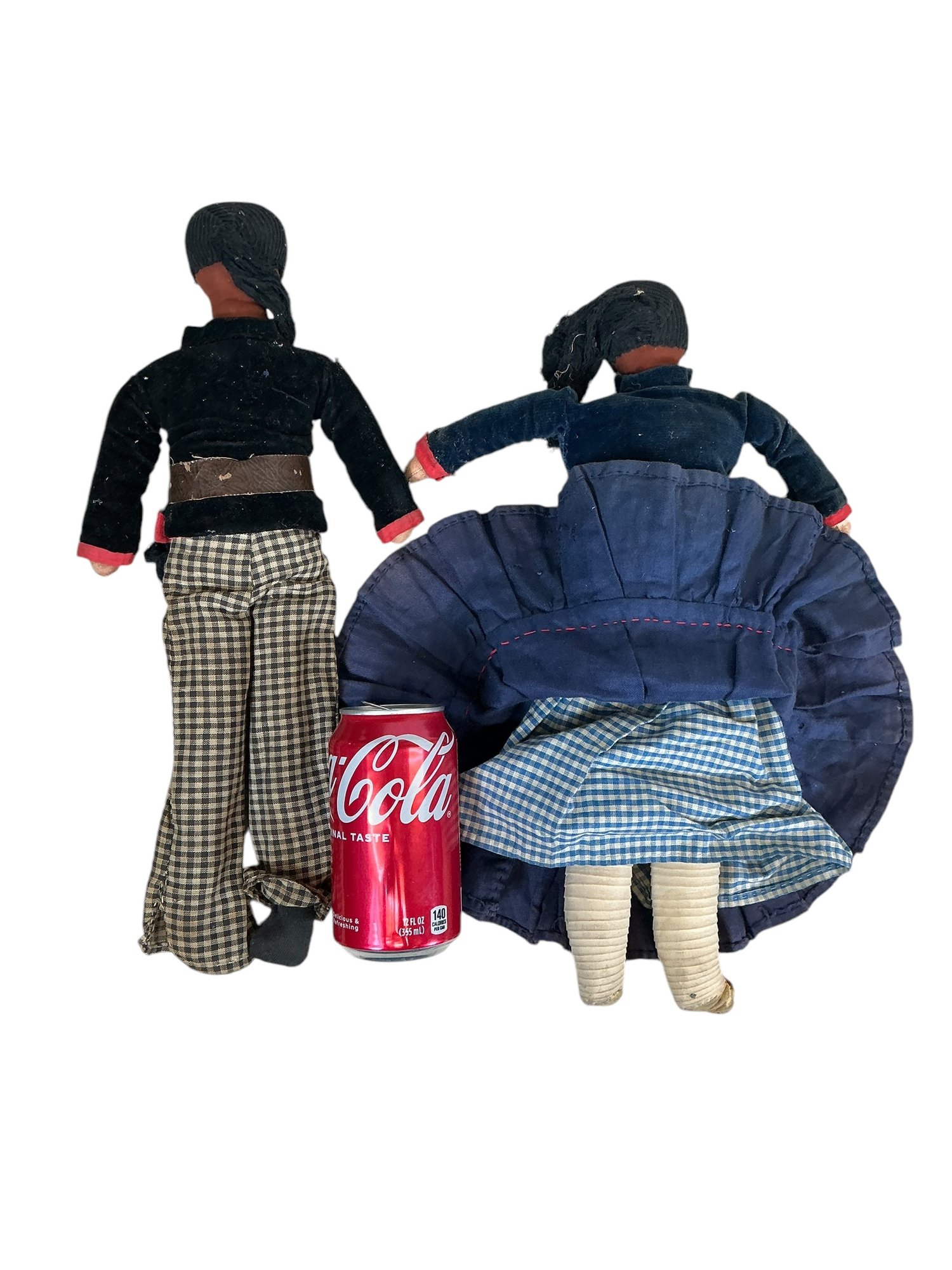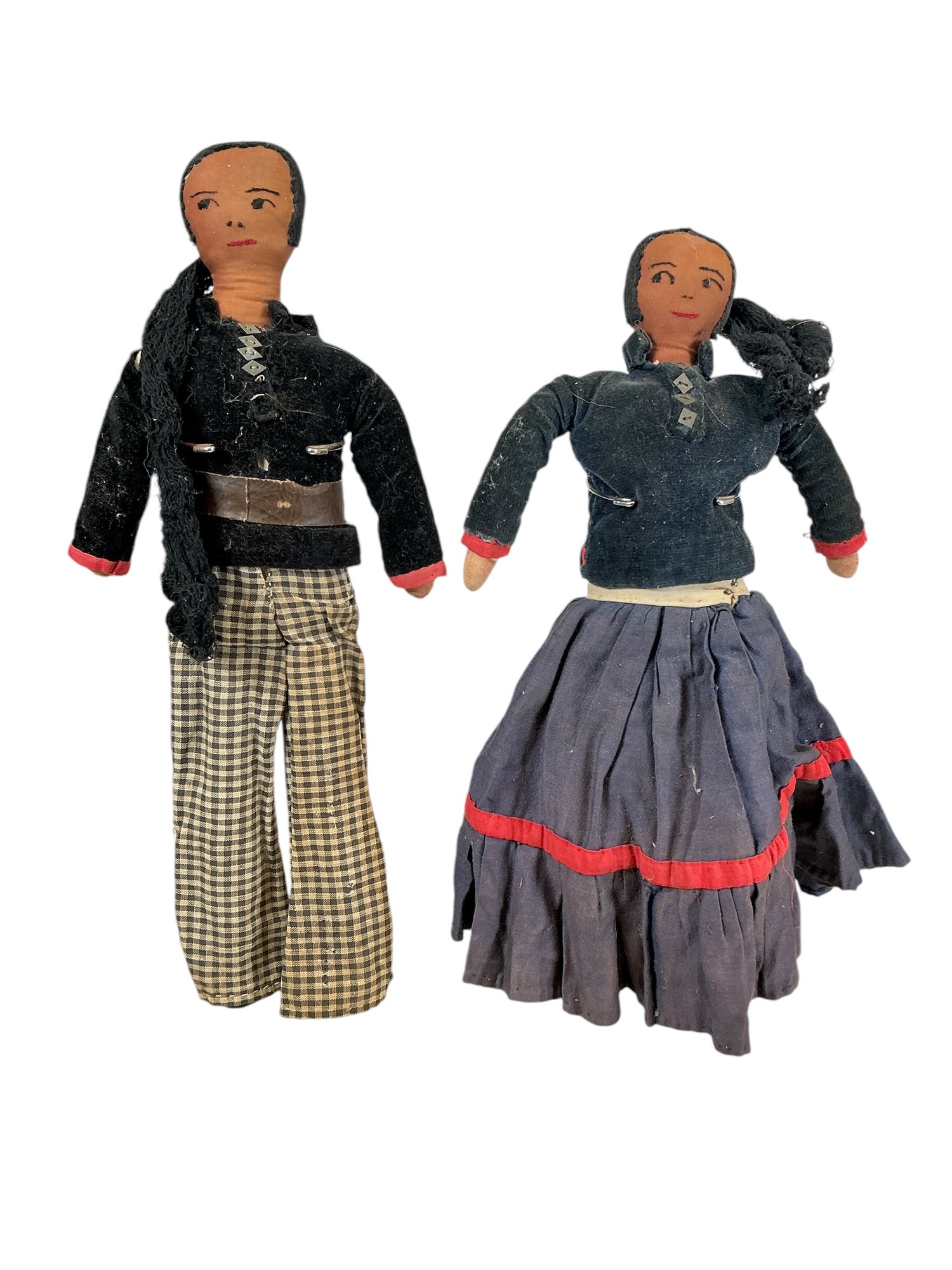 Pair Of 1930s Or 1940s Navajo Cloth Dolls Couple. In fair to good condition with some wear age darkening and fading to clothes and general dustiness. Stands not included. Tallest is approx. 16.”
