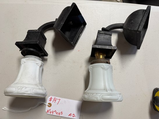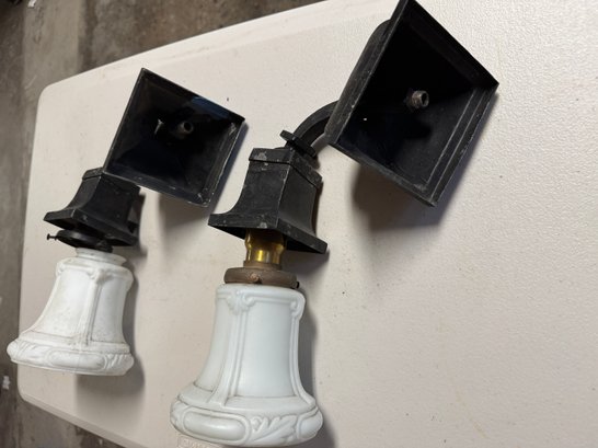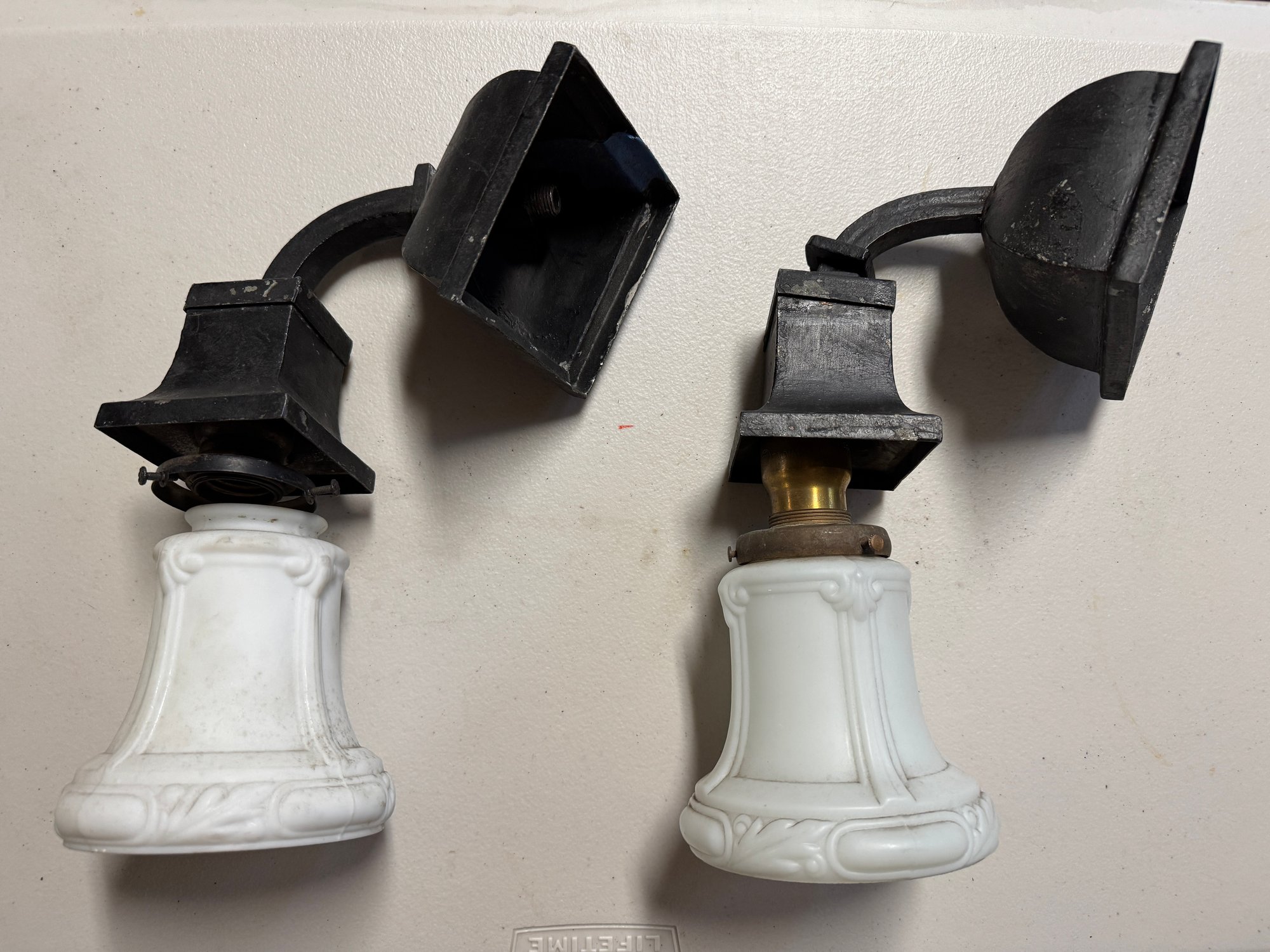 Pair of Art Deco Sconces with Milk Glass Shades. As found, This fixture is unwired, needs restoration.