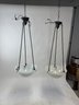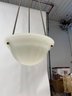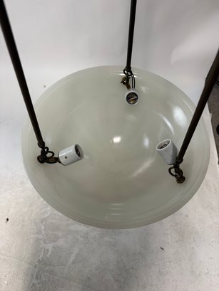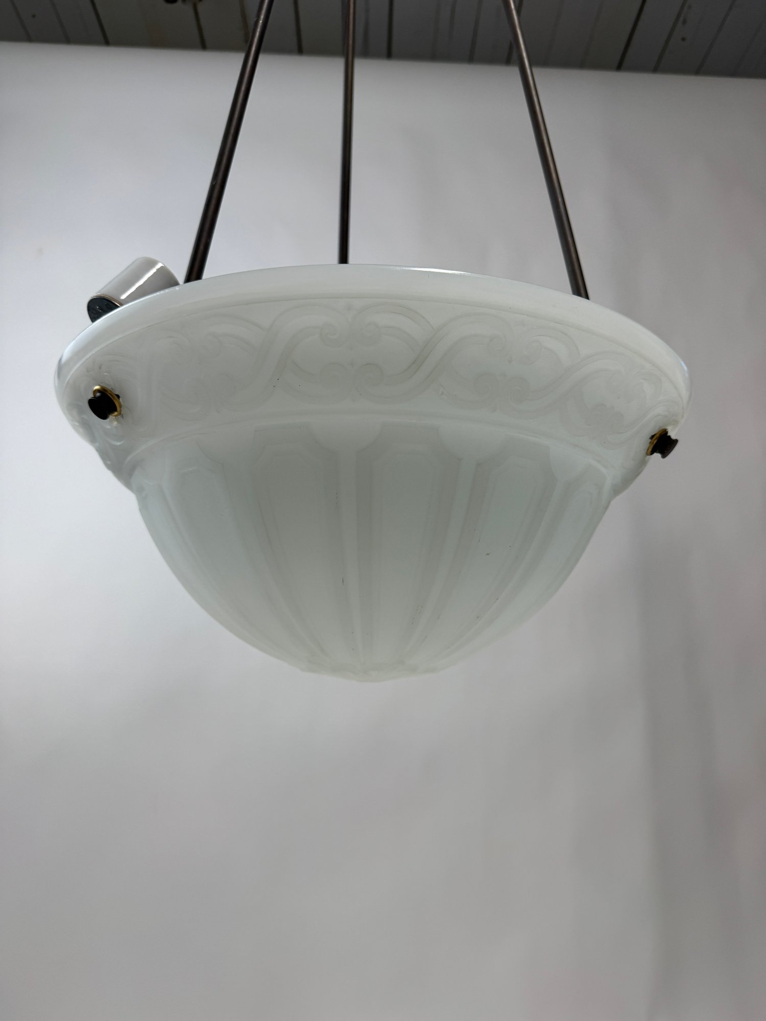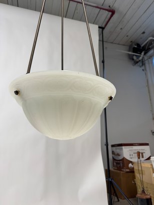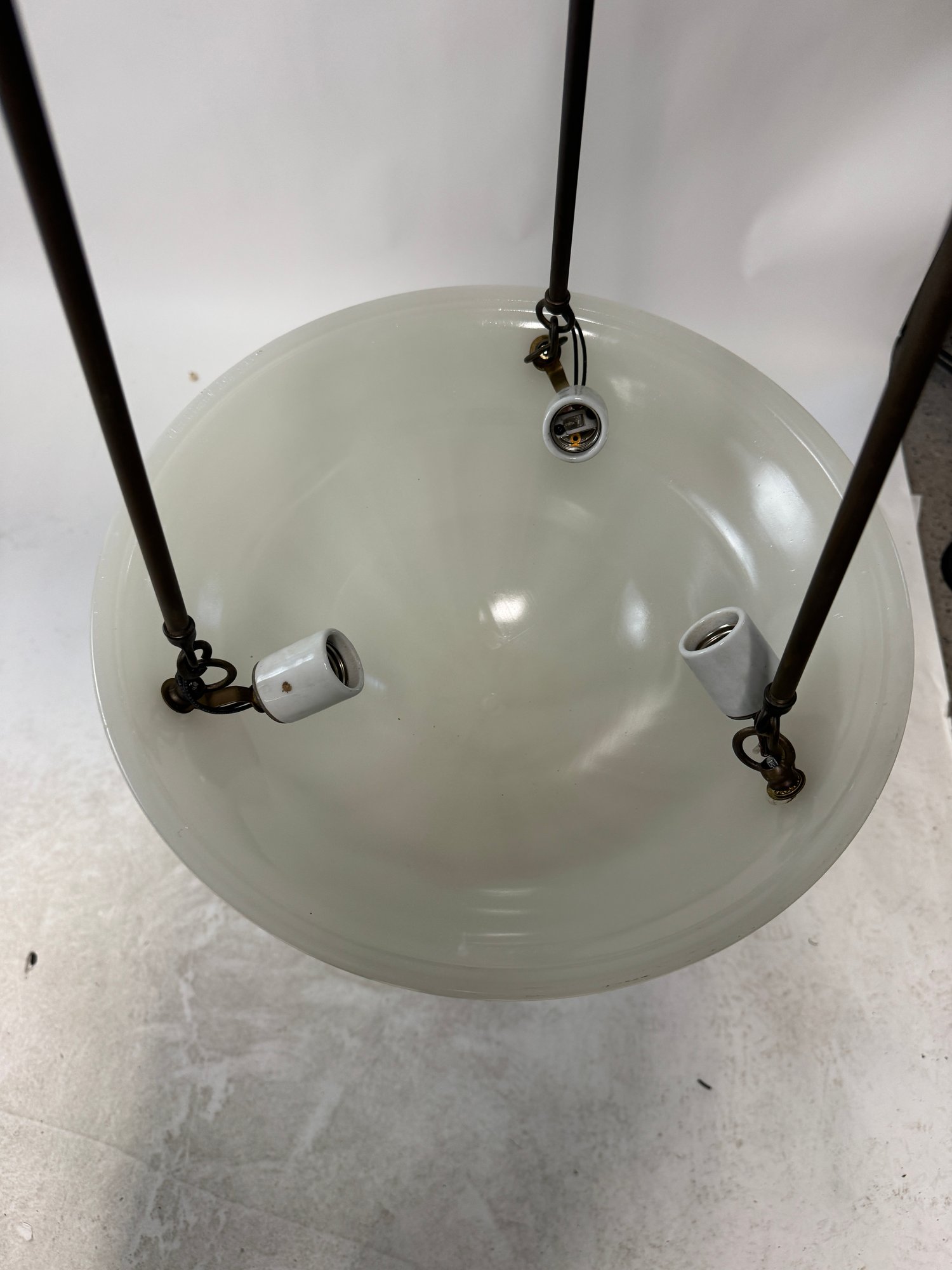 Pair of Art Deco White Glass Bowl 3 bulb fixtures.