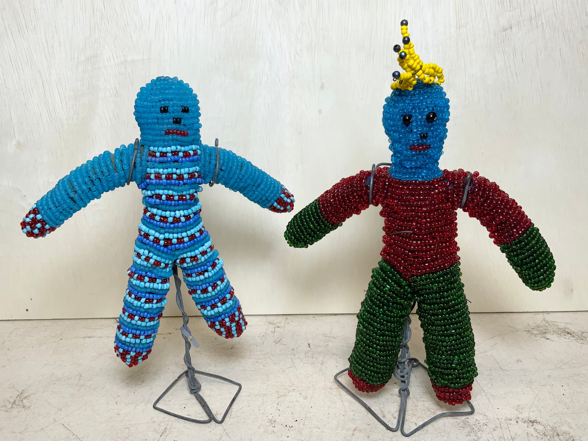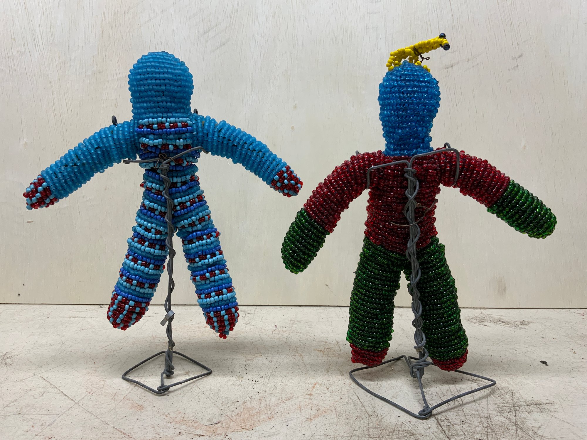 Pair Of Beaded Sudanese Dolls With Stands, each measures 9” tall.