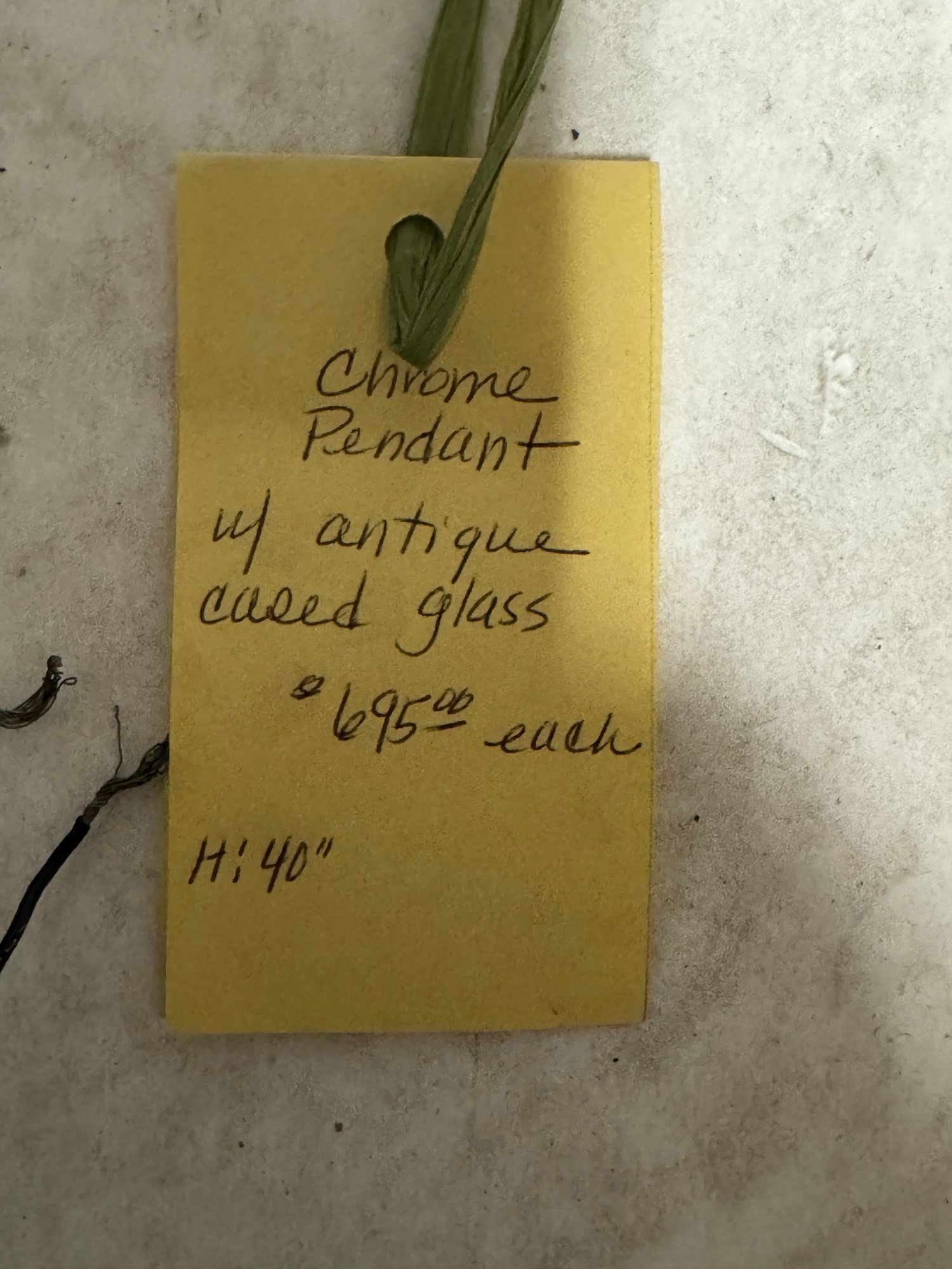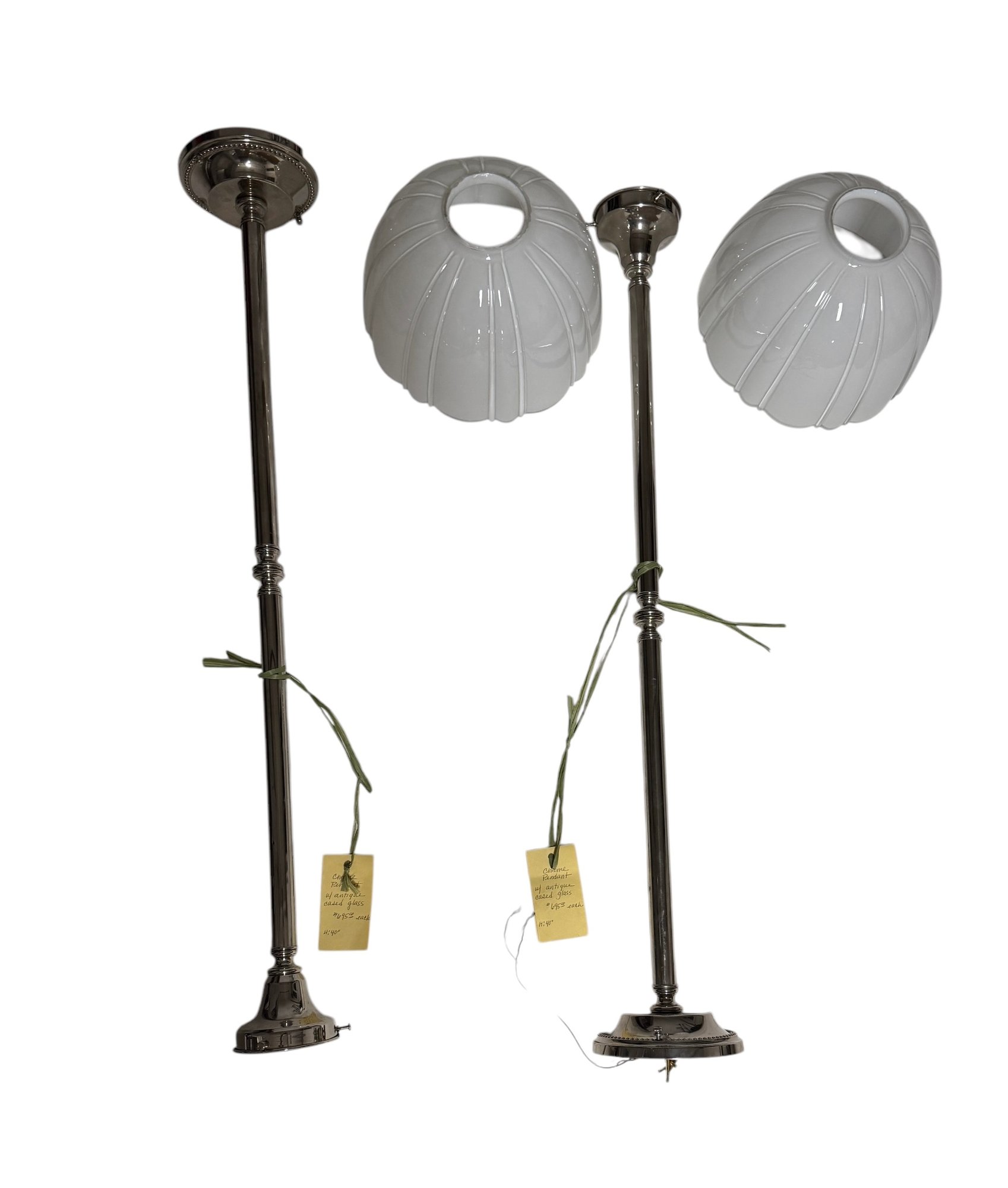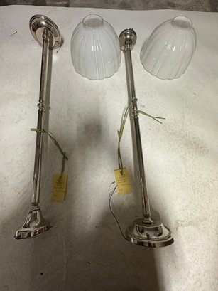 Pair of Chrome Pendant Case Glass Lamps 40" x 10" diameter.