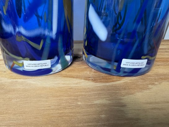Pair of Czech Cobalt Blue 11.5" Vases, these are in excellent condition.