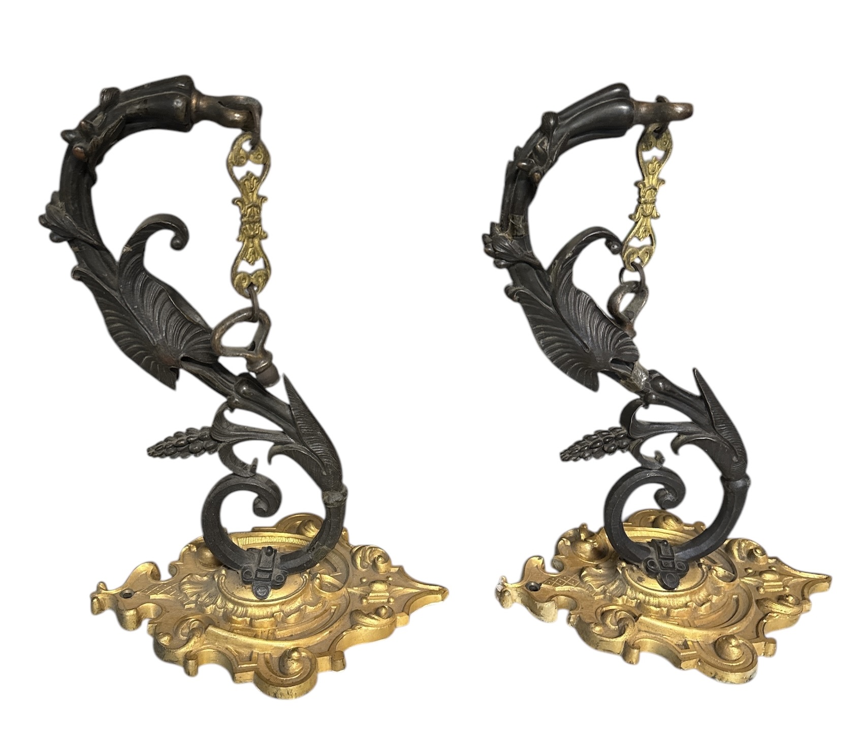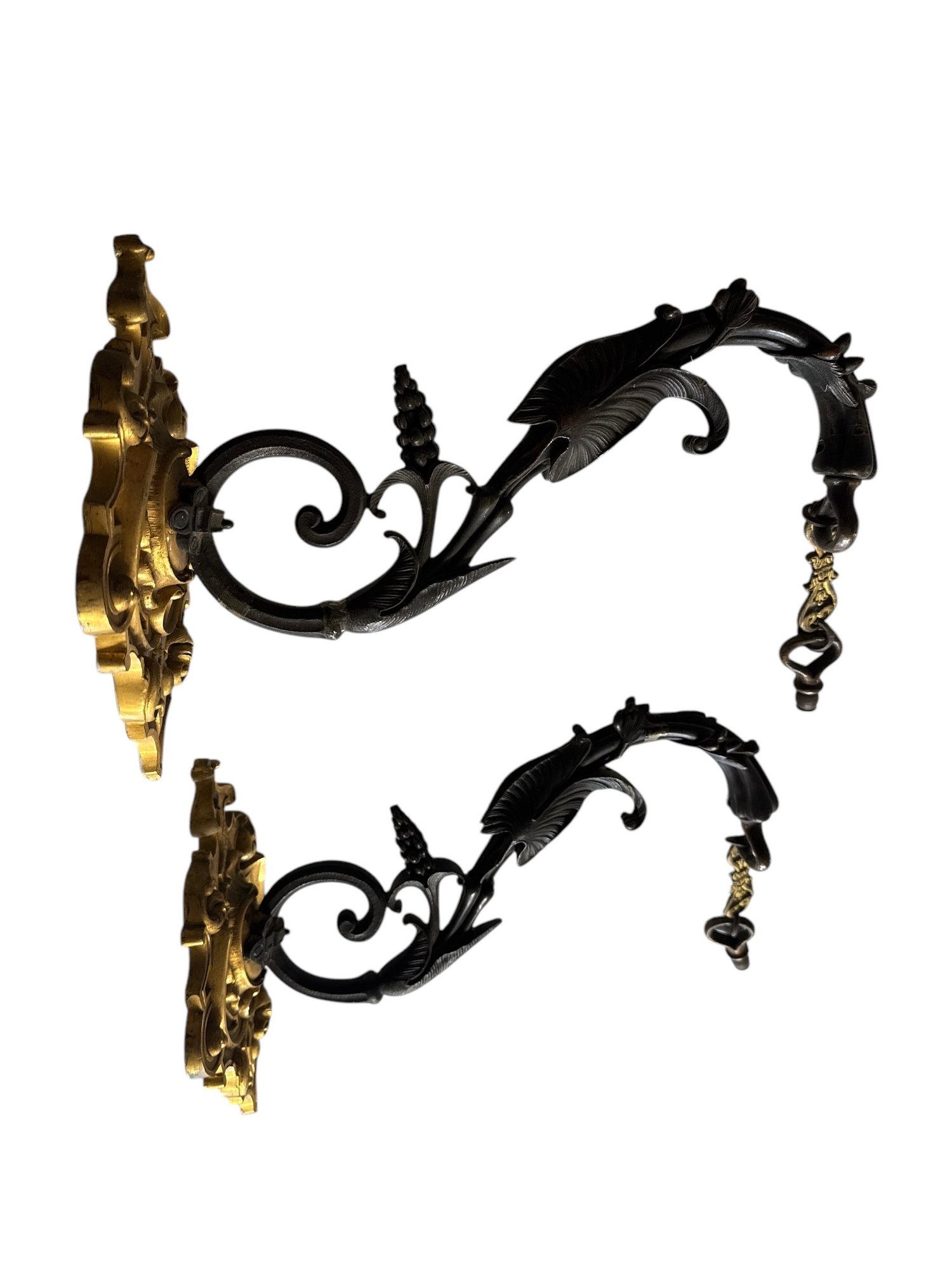 Pair of Incredible Victorian Bronze Sconces. How amazingly bold are these?! They're solid and very heavy. They measure 10" h x 7" w x 13" deep. This fixture is unwired.