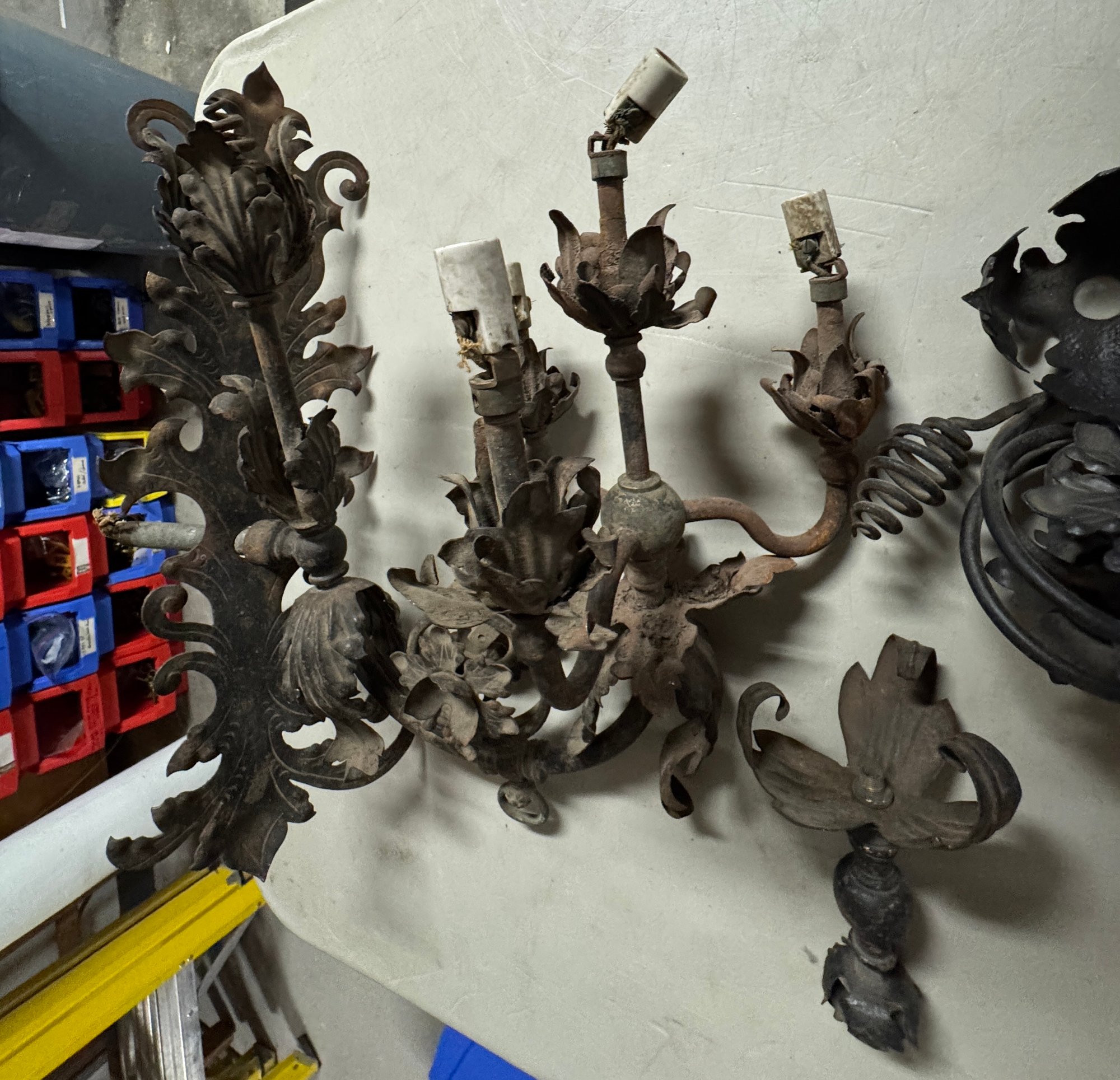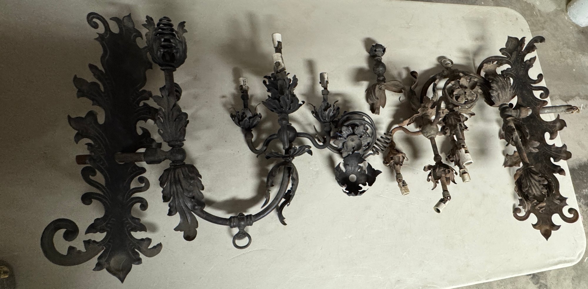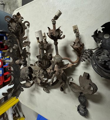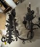 Pair Of Iron Gas Sconces C 1890 Electrified In Early 20th Century - As found, see pictures for condition. These measure 21" x 7" x 16"