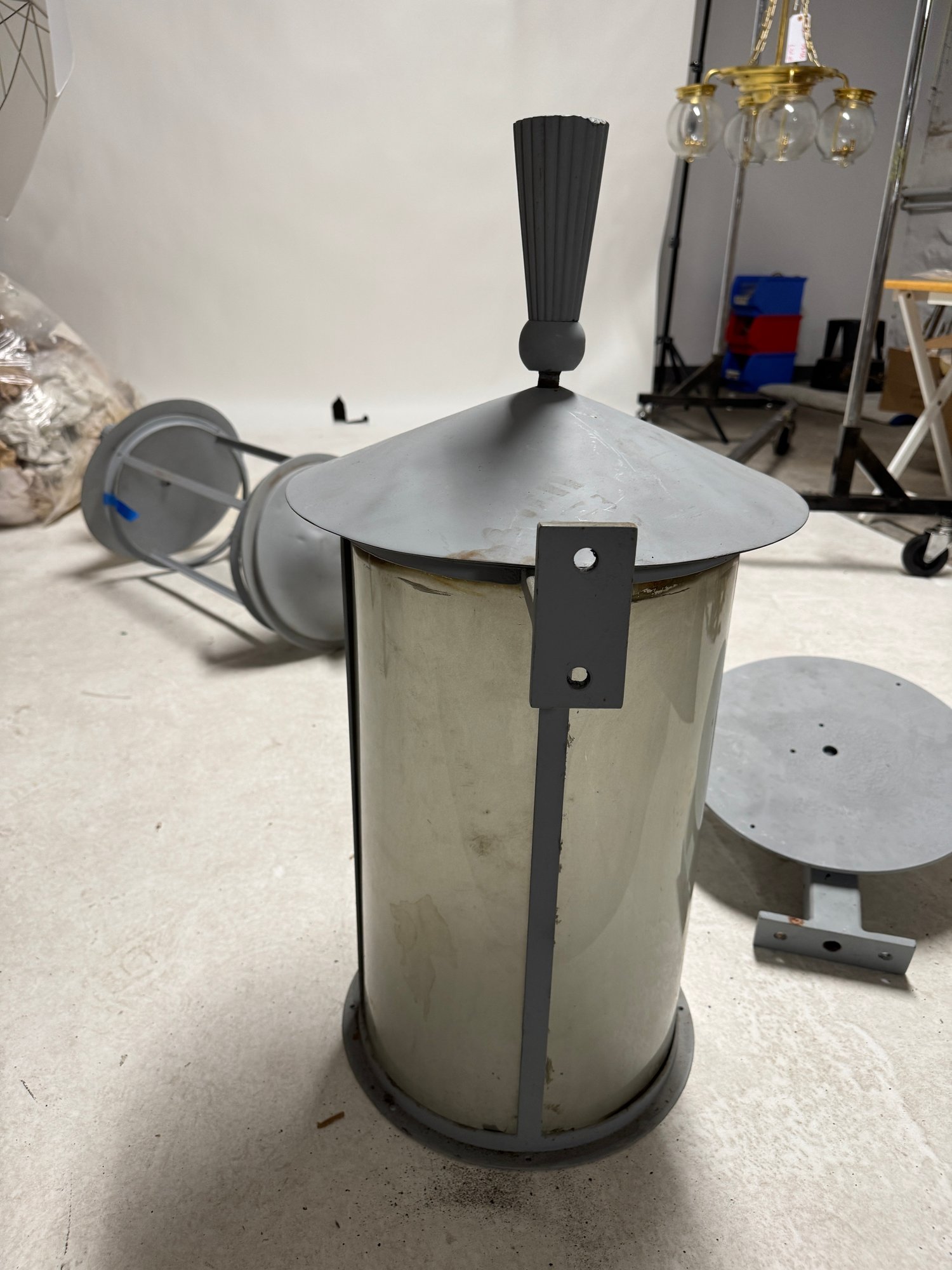 Pair of large Commercial Outdoor Lanterns. These measure 30" x 16" This fixture is unwired. One has it's convex glass panels, the other does not.