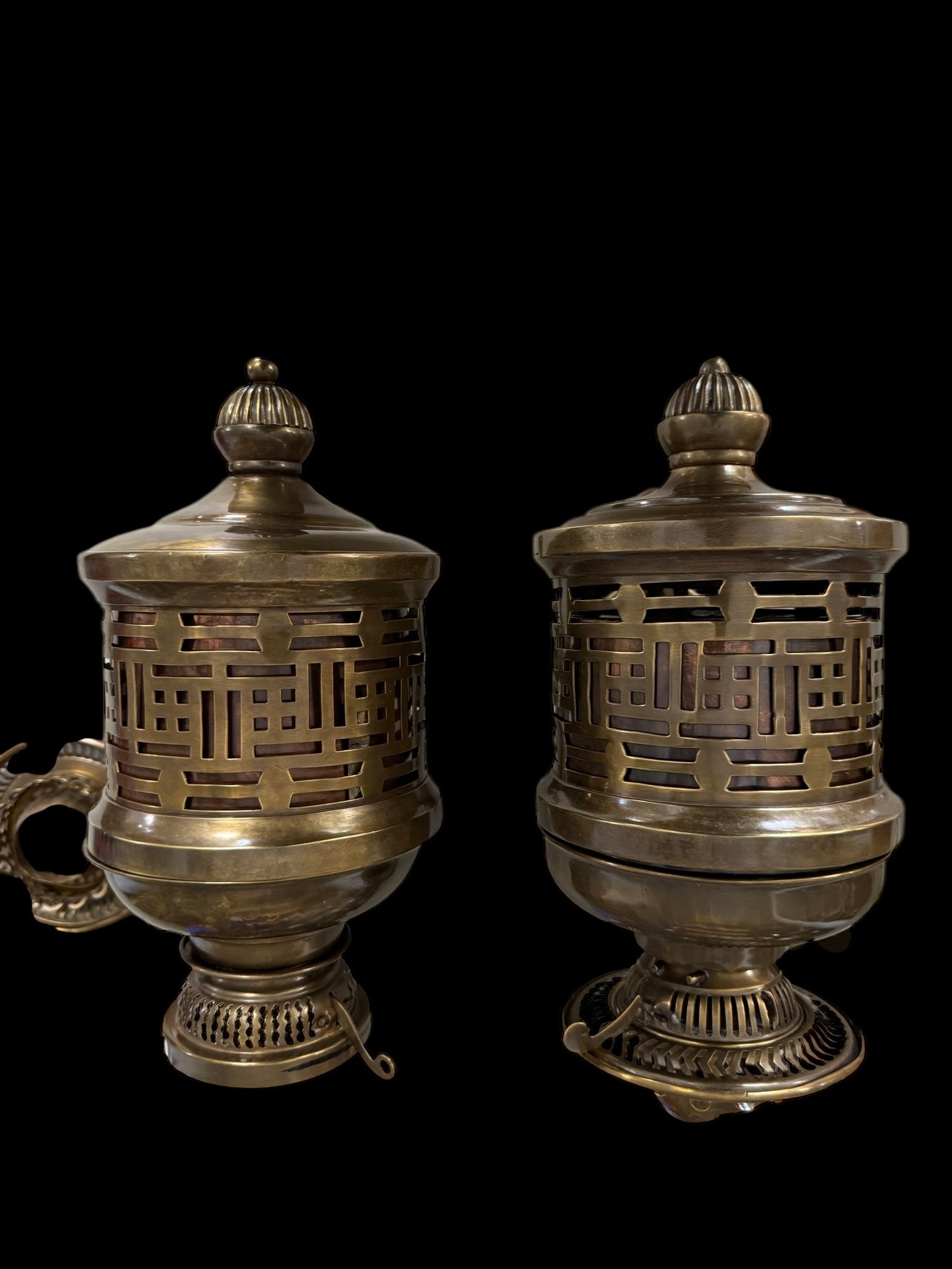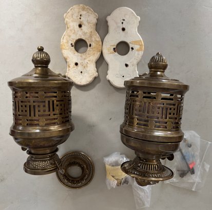 Pair Of Oil Lamp Brackets English Made Duplex - As Found, see pics for condition. These measure 11" x 5" x 8" deep