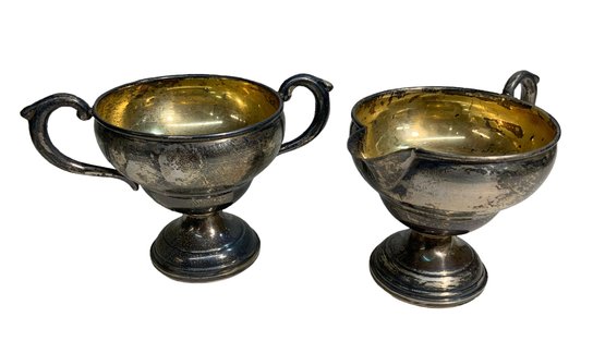 Pair Of Vintage Sterling Weighted Creamer And Sugar Bowl. Combined weight of 7oz.