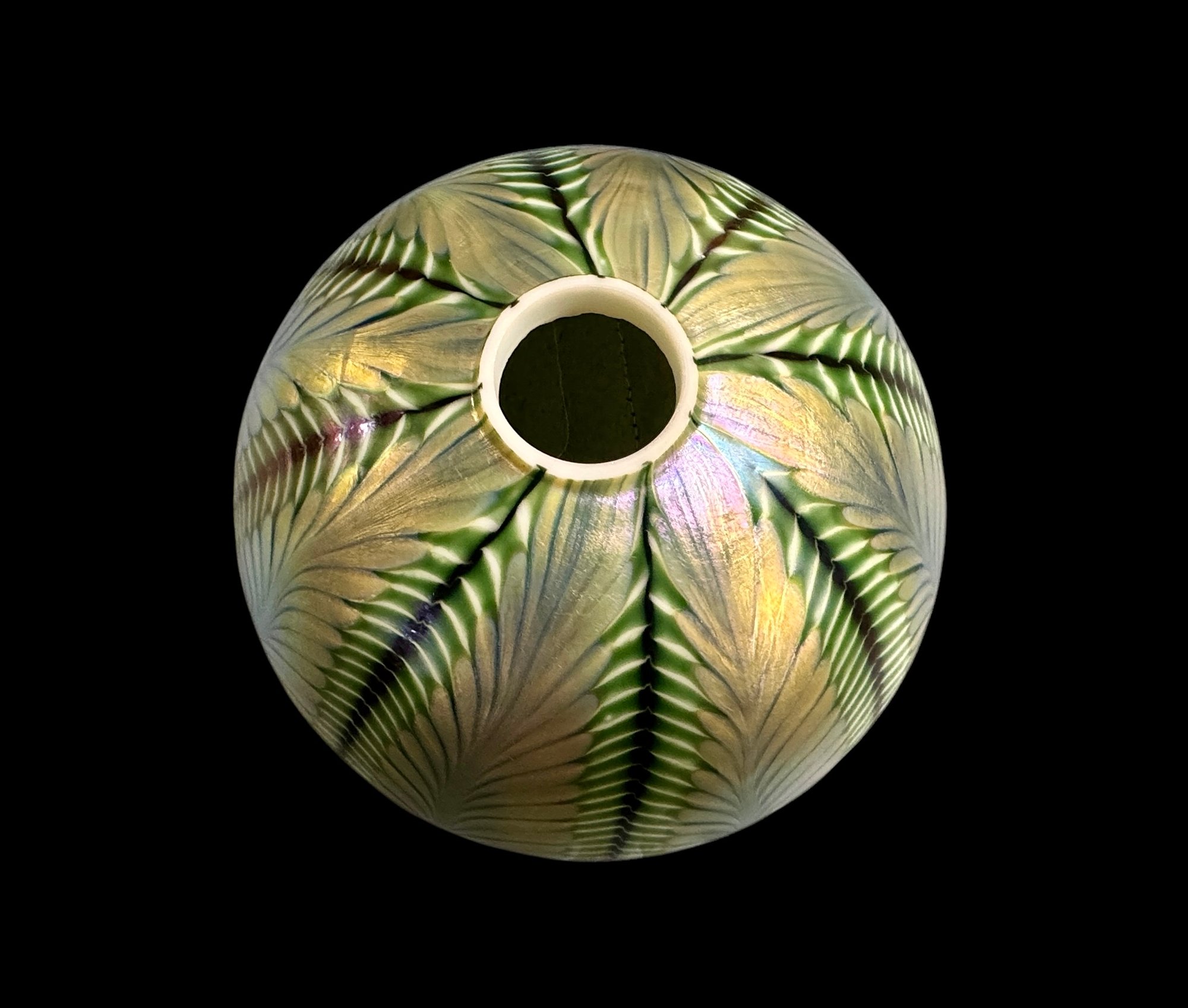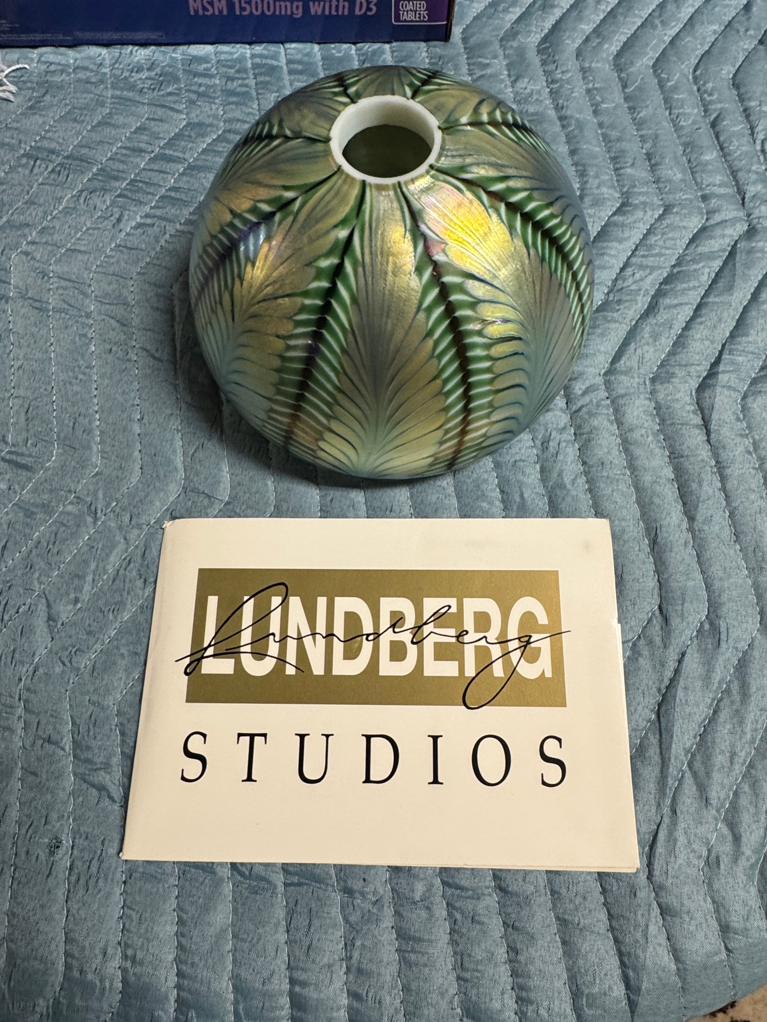Amazing Lundberg Art Glass Shade 6" h x 8 " diameter x 1 & 3/8" fitter. This is in excellent condition.