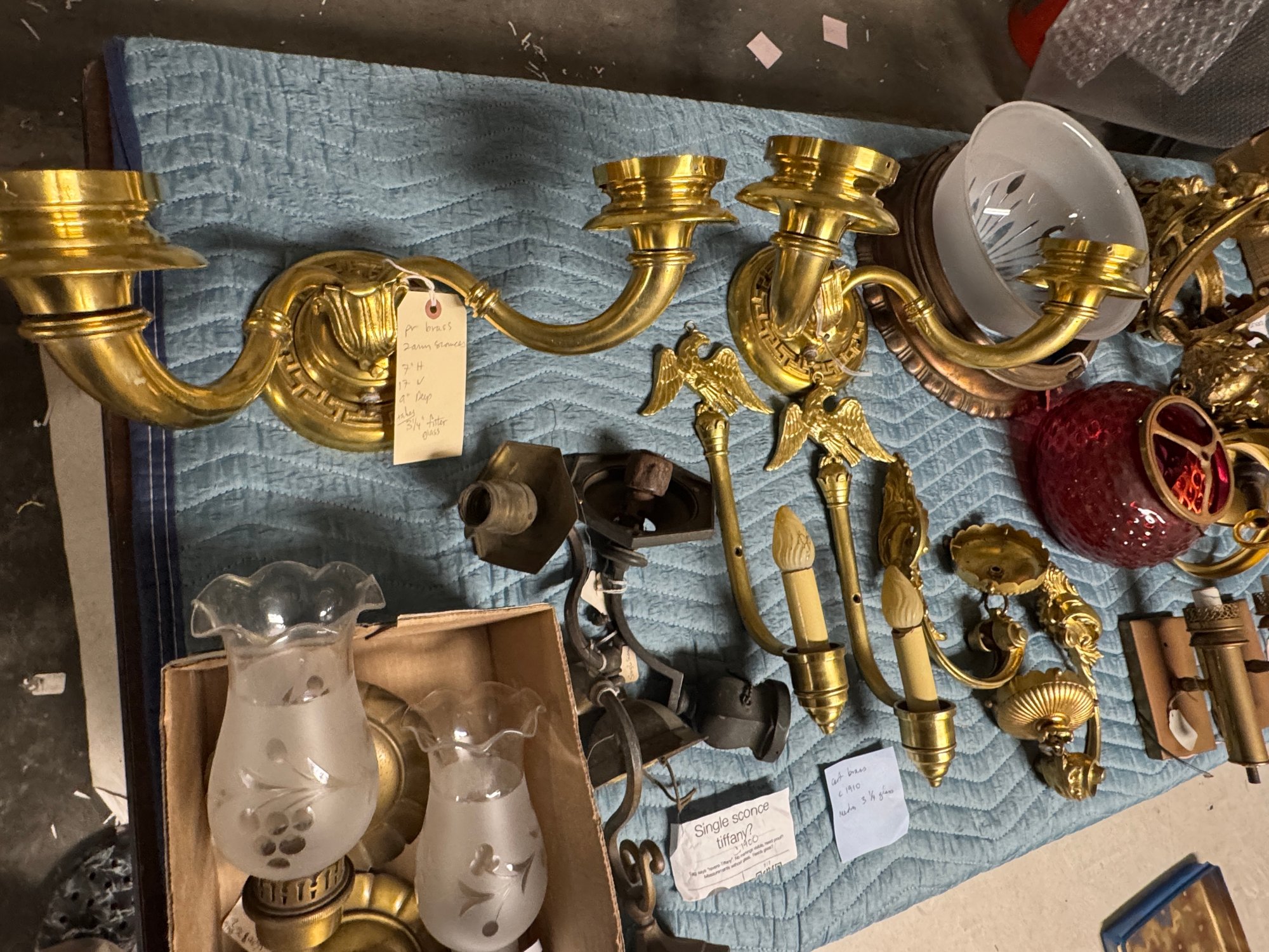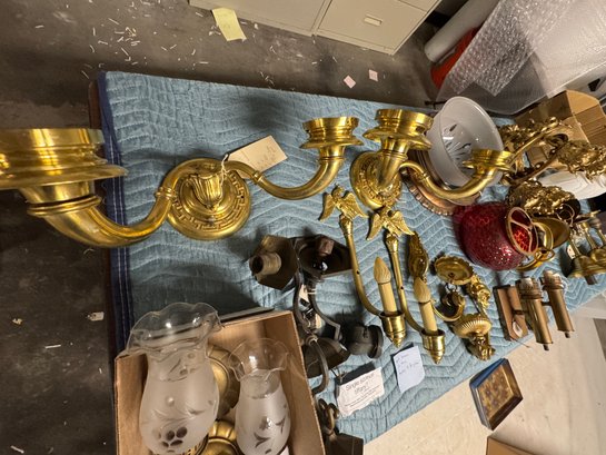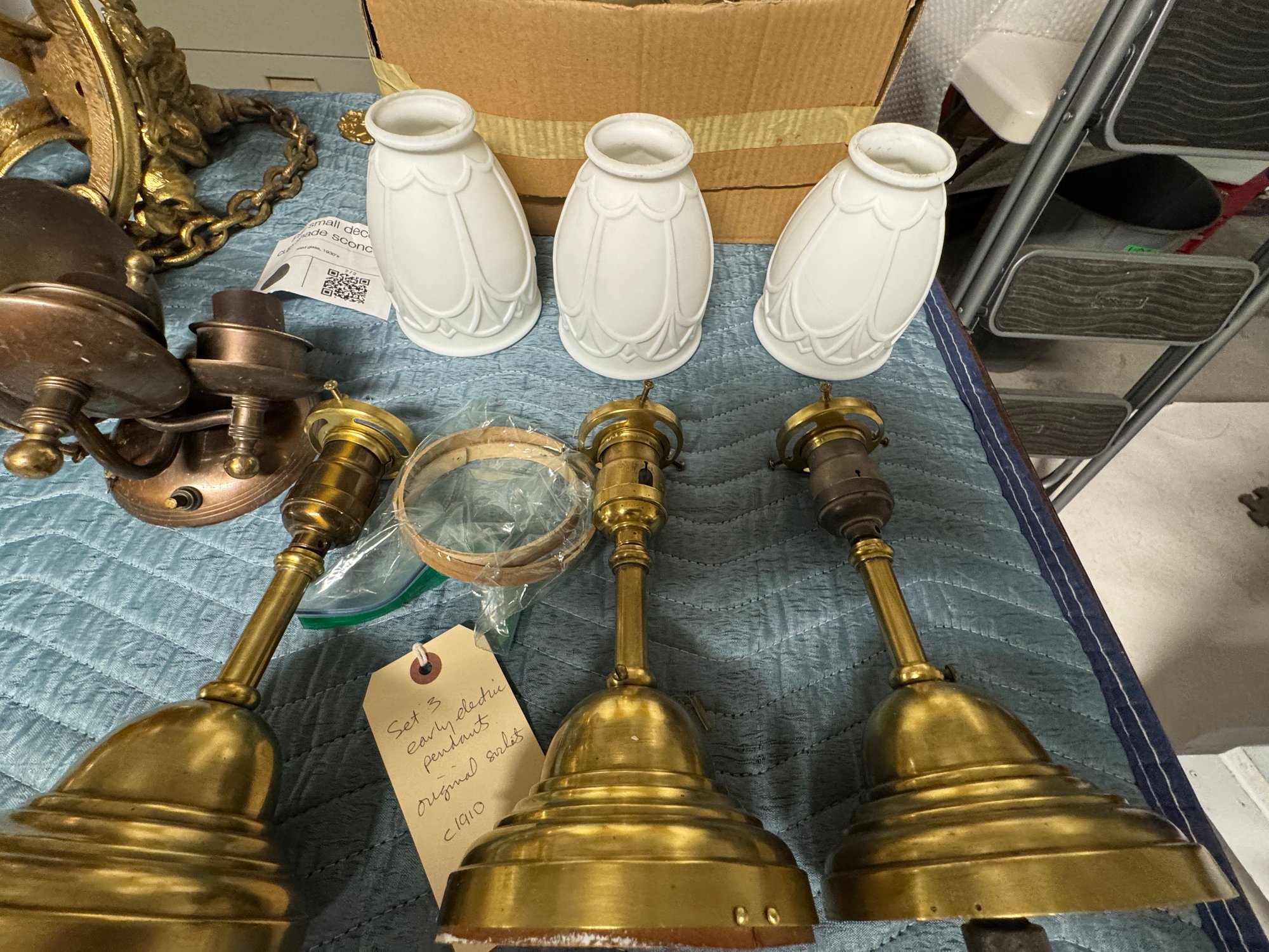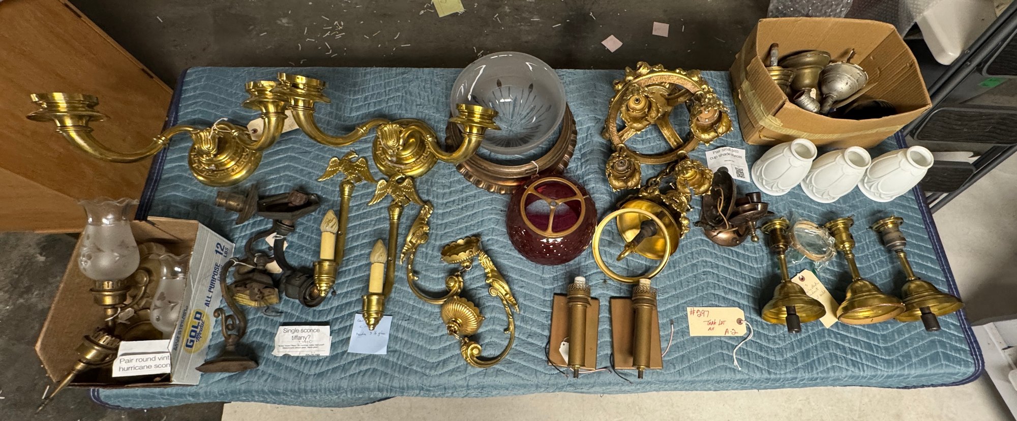 Amazing Table Lot of light Fixtures, many should be sold separately, but we don't have time! Our loss, your gain!