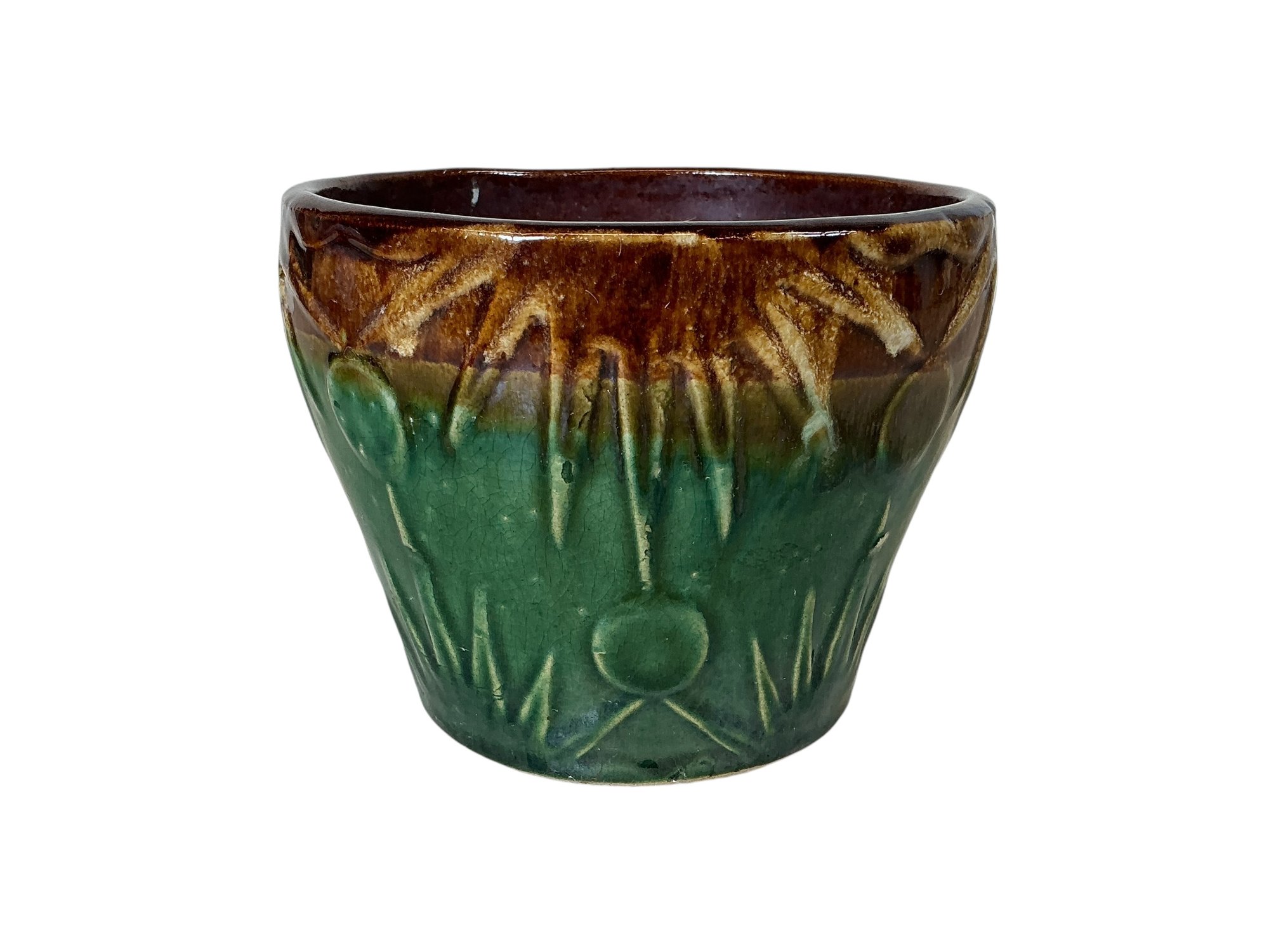 Another Antique Majolica Plant Pot Jardiniere. In good used condition. It is approx. 4.75” tall with a diameter of 6.”