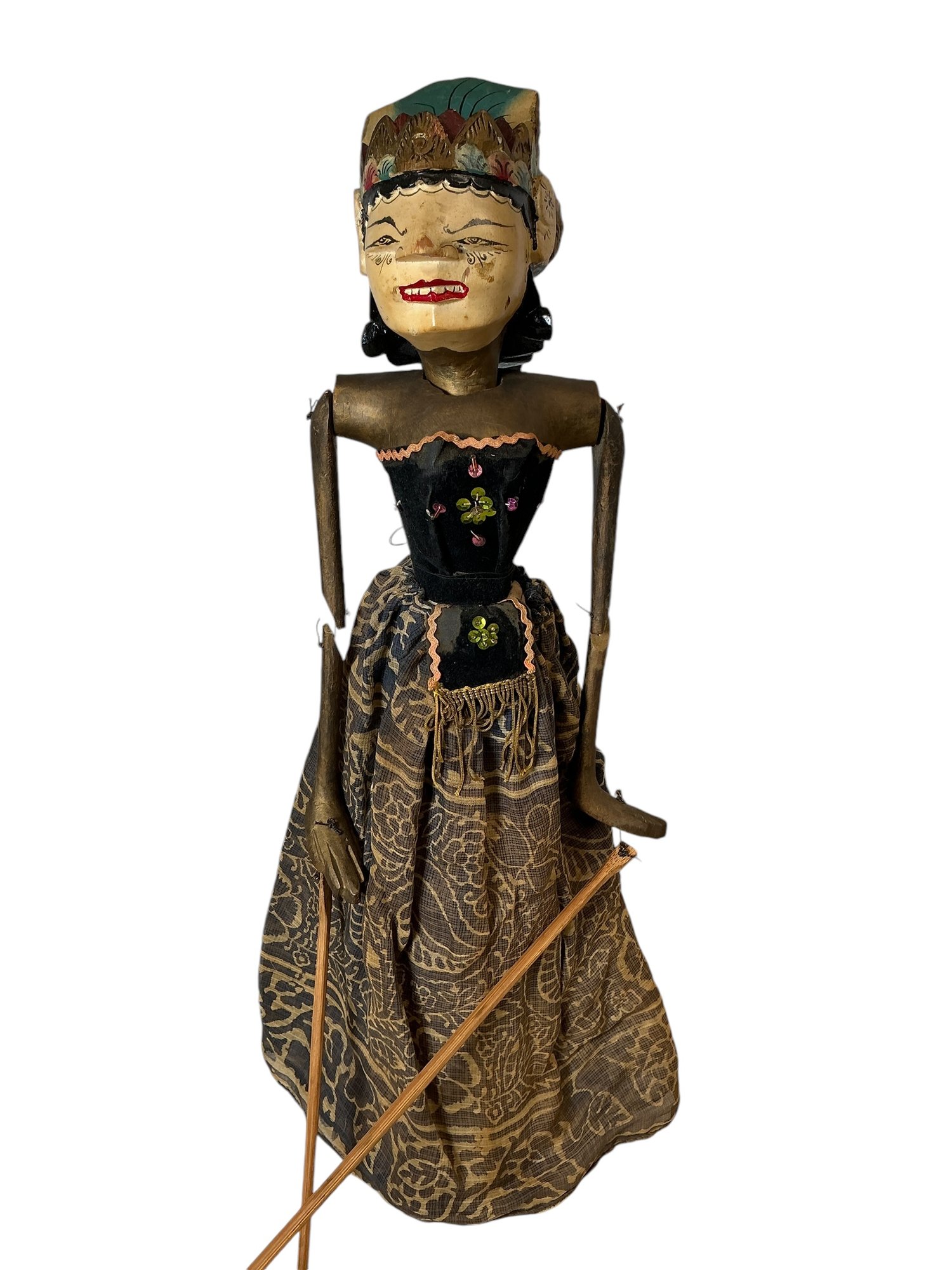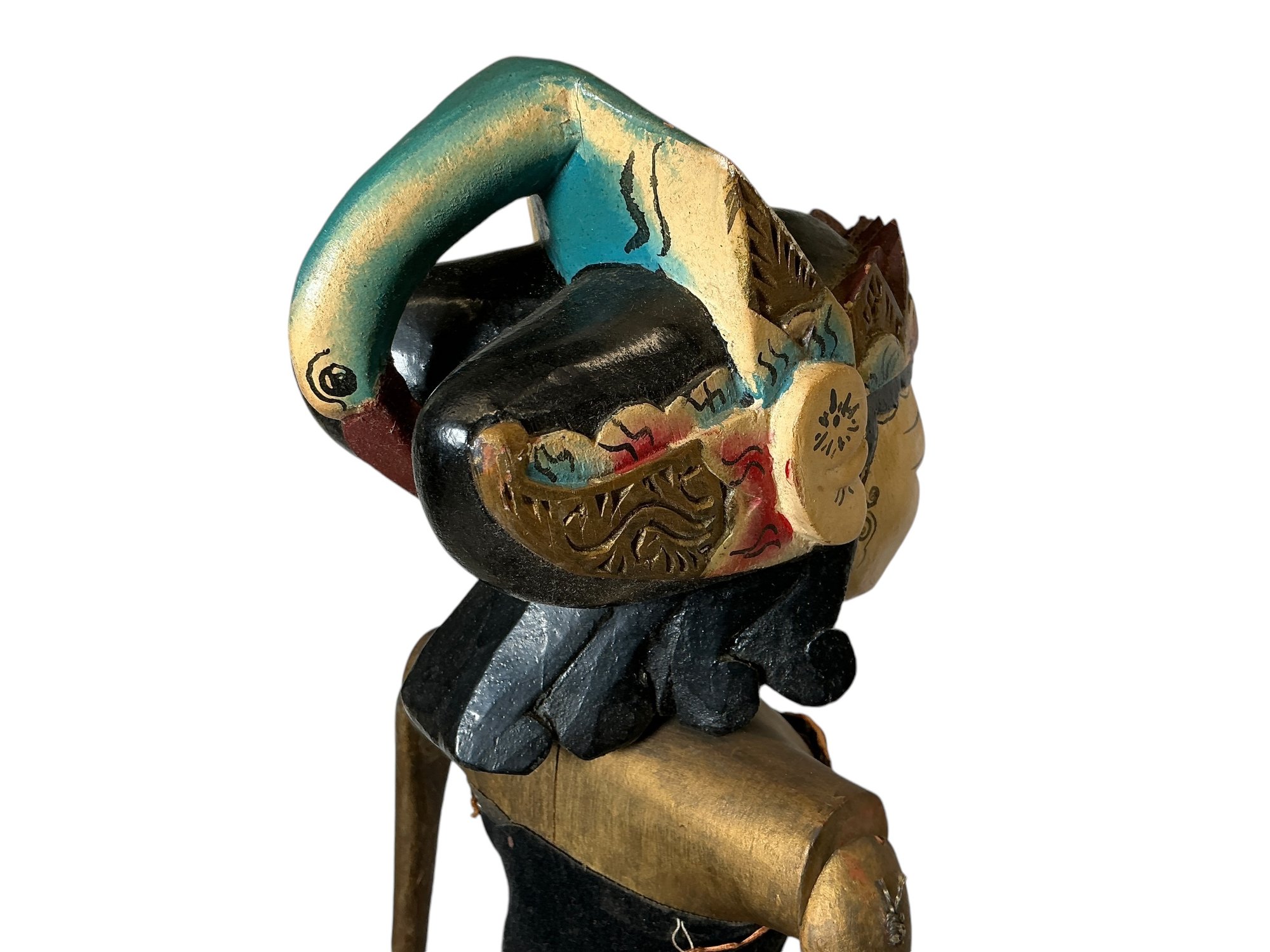 Another Large Vintage Indonesian Stick Puppet With Crane Form Headdress . In good used condition. It is approx. 22 inches tall.
