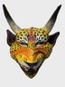 Giant Papier Mache Carnival Mask Jaguar With Horns, this is truly impressive and very very big! Measures 21” tall, only a little bit of wear, including a repair to one tooth. Signed Marshall G.W. Zoo D’art, Jacmel, Haiti.