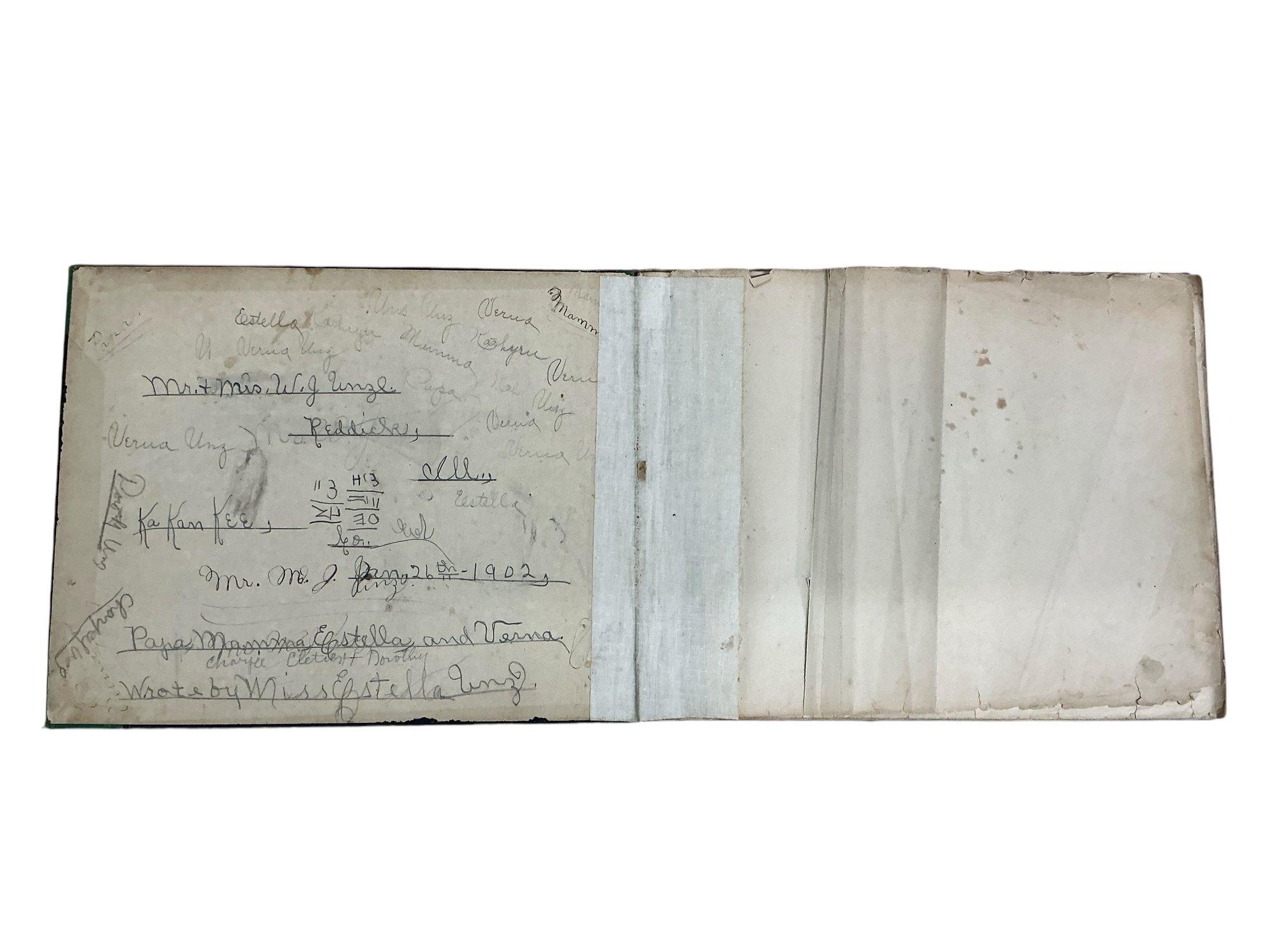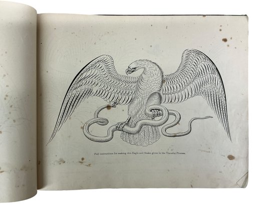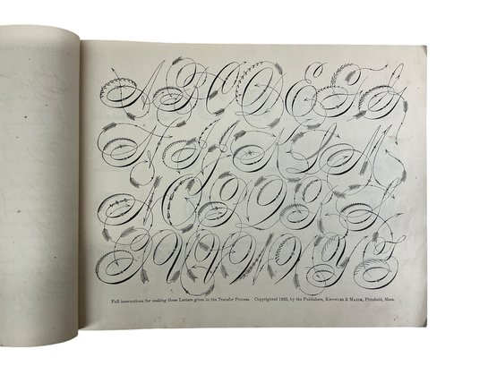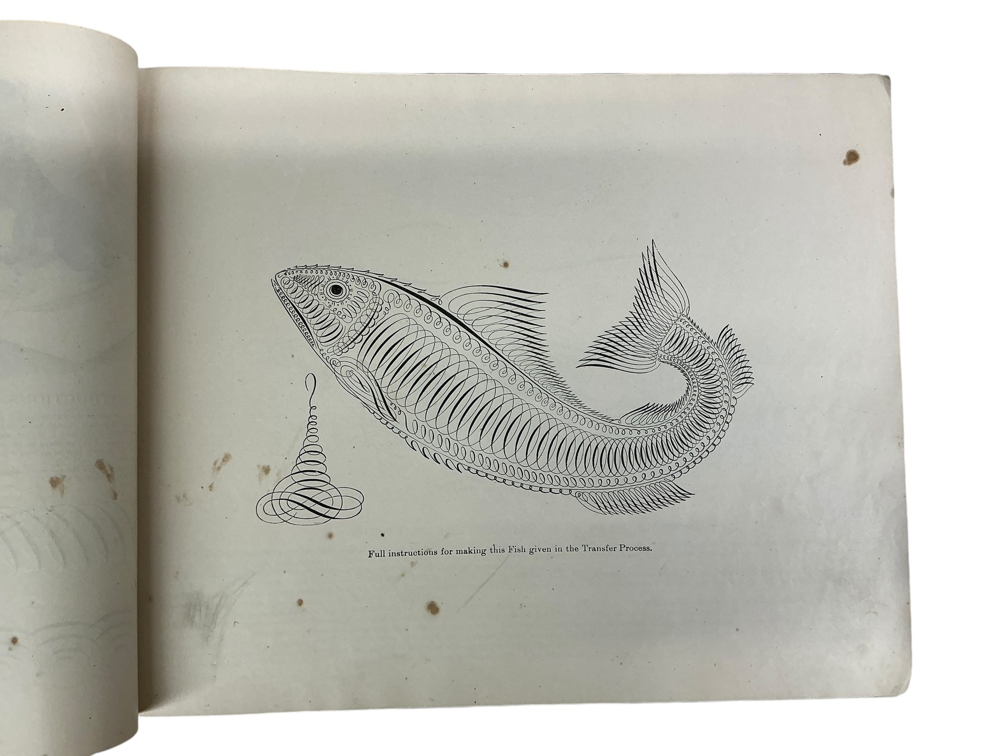 Antique 1881 Book On Real Pen Work Penmanship. Some creased pages and a tape repair at the front fly leaf, see photos. It is approx. 11.5” by 9.”