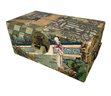 Antique 1920s Chinese Polychrome Pigskin Box With Original Brass Lock And Key Court Scene. In very good condition with minor wear and some tiny bits of paint missing, please see photos. It has the original brass lock and key which is quite rare. It is approx. 11” by 6” by 5.25.”